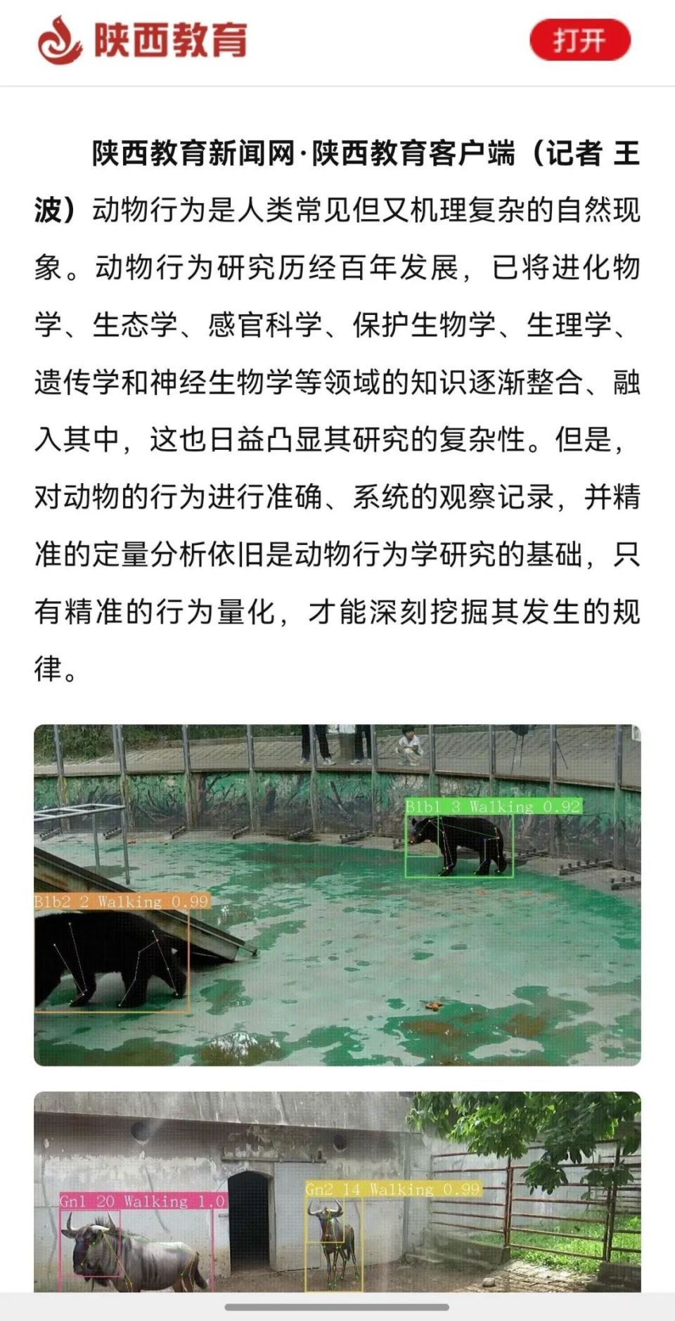 郭松涛表示,该技术可广泛应用于圈养动物日常活动规律监测和关键行为异常预警、野生动物行为数据分析和习性研究、实验动物健康状态和福利监测,甚至对人类自身的行为特征和健康状态进行监测分析。