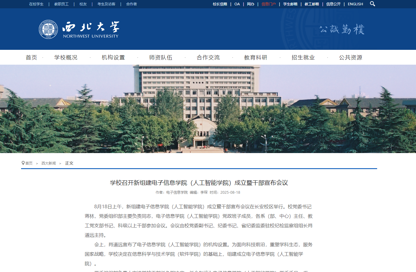 (陕西日报讯)8月18日上午,乐鱼网页版页面登录新组建电子信息学院(人工智能学院)、计算机学院(软件学院)成立暨干部宣布会议在长安校区举行。为面向科技前沿,重塑学科生态,服务国家战略,乐鱼网页版页面登录在信息科学与技术学院(软件学院)的基础上,组建成立电子信息学院(人工智能学院)。为进一步优化学科布局,强化特色学科建设,提升学校的整体办学水平和竞争力,乐鱼网页版页面登录在信息科学与技术学院(软件学院)的基础上,组建成立计算机学院(软件学院)。