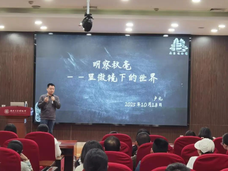 本期讲座特邀陕西省植物研究所卢元老师担任主讲,从早期荷兰眼镜商的发明雏形,一直讲到推动现代科学突破的低温电子显微镜,通过洋葱表皮细胞、红细胞形态、雪花结晶等精美显微图像,将复杂的科学原理转化为直观易懂的知识。讲座中,卢老师还分享了诸多有趣案例:世界上最小的书籍、用原子制作的动画……这些奇妙的科学应用引发了观众的浓厚兴趣。互动环节,大家争相提问,从微观技术原理到科学发现意义,问题层出不穷,卢老师均以通俗易懂的方式一一解答,现场气氛热烈。