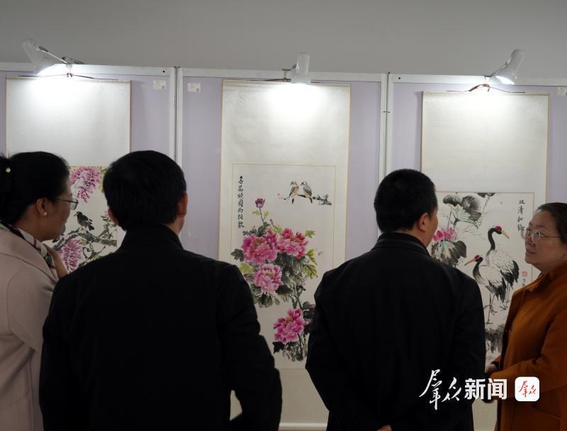 开幕式上,乐鱼网页版页面登录前校长郭立宏、乐鱼网页版页面登录艺术学院院长郭琳、乐鱼网页版页面登录艺术学院党委书记吕健、乐鱼网页版页面登录现代学院院长卢山冰、陕西省青年文学协会副主席青年作家王小云等各界嘉宾齐聚现场,共话艺术与人文。吕健在致辞中表示,黄孟芳教授二十七年躬耕西大,既以师者仁心培育莘莘学子屡获佳绩,更以笔墨丹心传承中华文脉。其作品中“花鸟为形、人文为魂”的创作追求,正是西大人文精神的生动写照,为校园文化建设树立了典范。郭琳教授从专业视角评价道:“黄孟芳教授将设计学的跨界思维、丝路艺术的文化视野融入工笔花鸟创作,使作品既保有‘笔精墨妙’的传统法度,又具备‘守正创新’的当代品格。她的创作实践,为学院学科融合发展提供了鲜活样本,也为当代花鸟画创作开辟了新路径。”