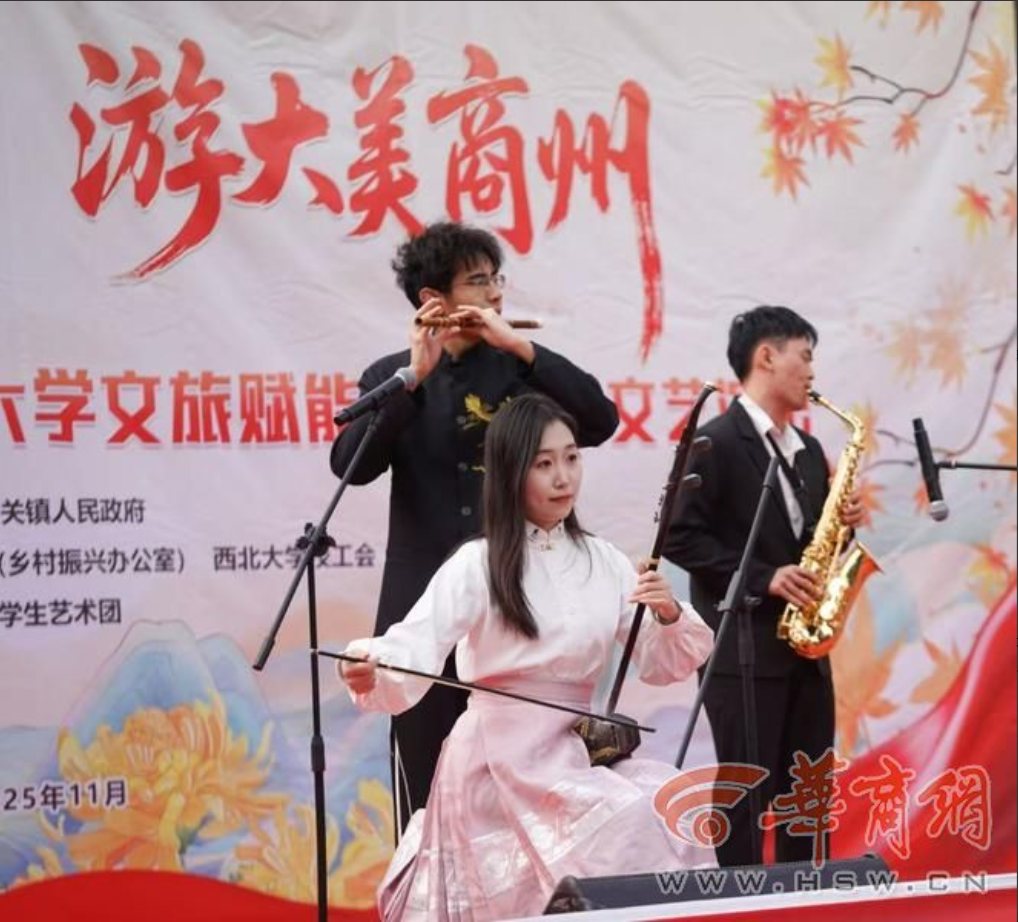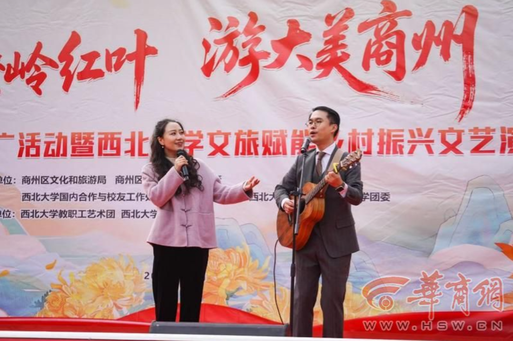 11月8日,“赏秦岭红叶、游大美商州”商州区文旅推广活动暨乐鱼网页版页面登录文旅赋能乡村振兴文艺演出活动在陕西省商洛市商州区牧护关镇铁炉子村党群服务中心隆重举行。商州区政府党组成员曾佳、商州区文化和旅游局副局长李彦、商州区牧护关镇党委书记闵健、乐鱼网页版页面登录国内合作与校友工作处(乡村振兴工作办公室)副处长燕来出席活动,商州区牧护关镇、乐鱼网页版页面登录工会、乐鱼网页版页面登录团委相关工作负责人,以及铁炉子村“两委”干部、镇包村干部、乐鱼网页版页面登录驻村工作队全体成员、铁炉子村村民和游客等500 余人观看演出。演出节目由乐鱼网页版页面登录工会教职工艺术团、乐鱼网页版页面登录团委学生艺术团精心编排。
