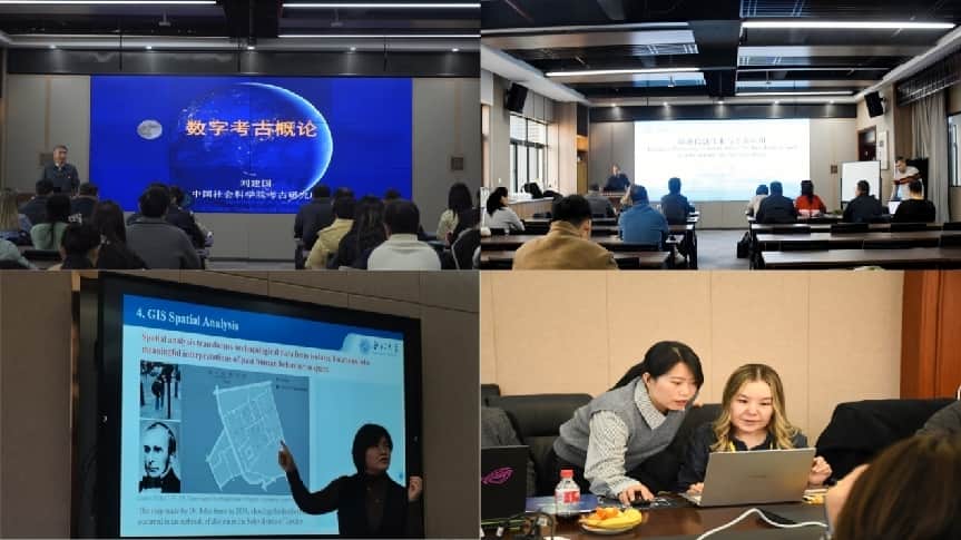 课堂教学阶段,中国社会科学院考古研究所刘建国研究员和HIST中心副主任、中国科学院空天信息创新研究院王心源研究员、乐鱼网页版页面登录城市与环境学院王春梅教授、刘建红副教授等专家采用“理论讲解+典型案例+实操演练”相结合的教学方法,系统介绍了数字摄影与数字影像、多视角三维重建、遥感考古、考古地理信息系统等相关理论及应用、数字考古设备与软件的使用方法。