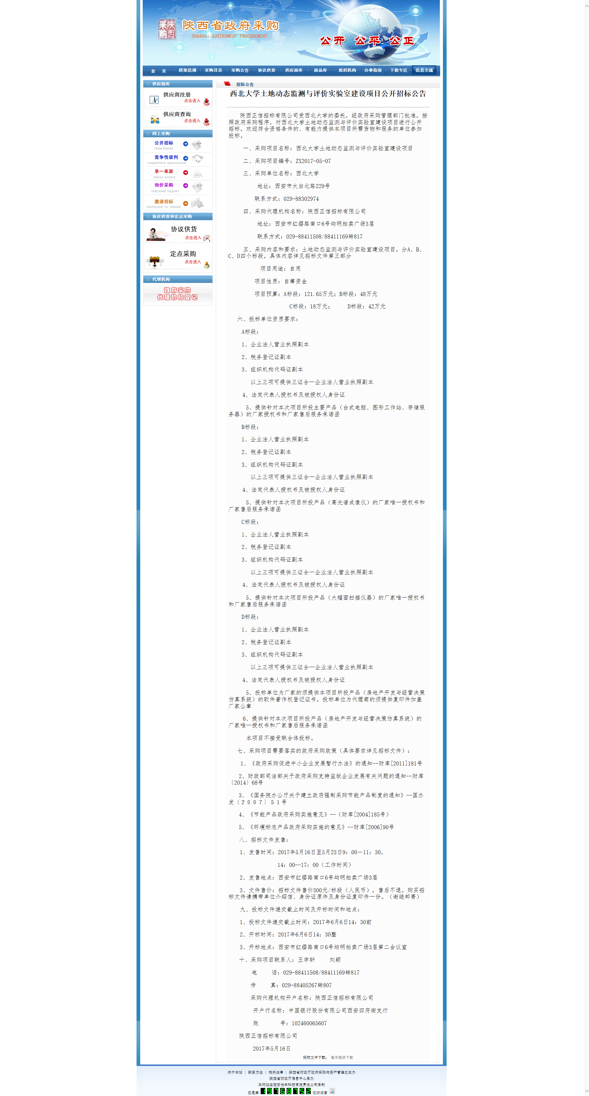 乐鱼网页版页面登录土地动态监测与评价实验室建设项目公开招标公告 作者: 编辑: 时间:2017-05-17 08:46 http://www.ccgp-shaanxi.gov.cn/zbxxs.jsp?NewsID=ZB170516122825US160408011615&ClassBID=C0001