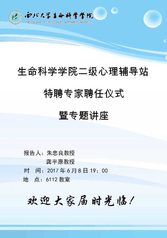 生命科学学院二级心理辅导站特聘专家聘任仪式暨专题讲座
