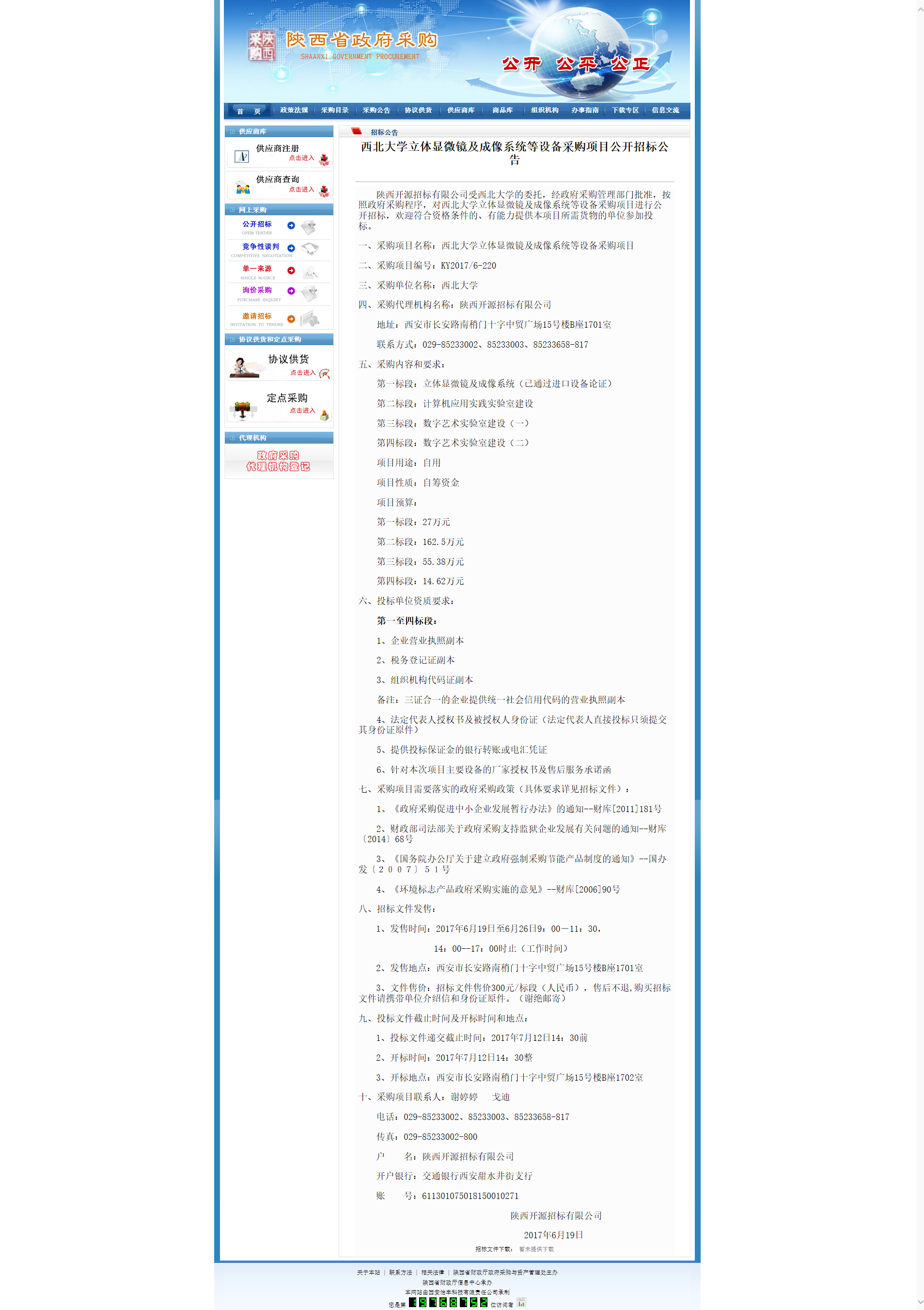乐鱼网页版页面登录立体显微镜及成像系统等设备采购项目公开招标公告 作者: 编辑: 时间:2017-06-20 08:24 http://www.ccgp-shaanxi.gov.cn/zbxxs.jsp?NewsID=ZB170619161034US131018031658&ClassBID=C0001