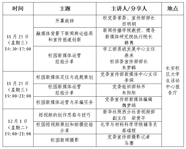 关于举办乐鱼网页版页面登录新媒体联盟培训分享会的通知 作者: 编辑:李琛 时间:2020-11-19 校内各单位: 为进一步加强校内新媒体建设与管理,推进校园媒体深度融合发展,搭建有效联动、聚合传播的交流平台,乐鱼网页版页面登录新媒体联盟将于近期举办培训分享会。现将有关安排通知如下: 一、参会人员: 乐鱼网页版页面登录新媒体联盟成员单位指导老师、学生骨干;全校宣传思想类学生社团全体成员;校内各单位师生通讯员。 二、会议安排: 请各单位组织相关师生按时参会。 宣传部 网信办 学工部 校团委 2020年11月17日