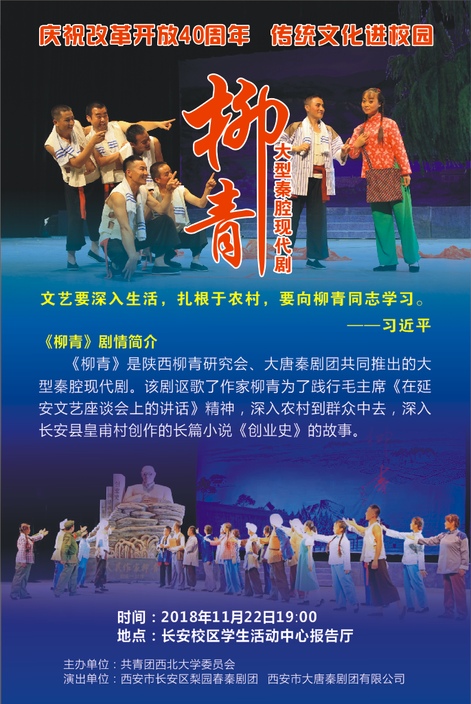 庆祝改革开放40周年,传统文化进校园——大型秦腔现代剧《柳青》乐鱼网页版页面登录专场演出