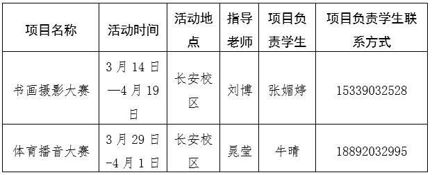 同时,体育教研部、团委和新闻传播学院将开展书画摄影大赛及体育播音大赛,望广大同学积极参与。