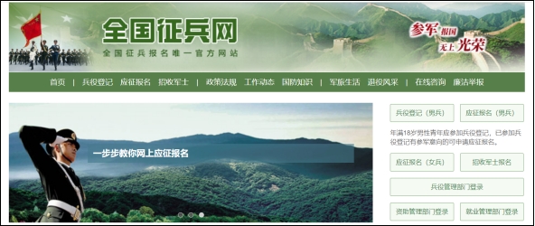打开全国征兵网乐鱼(中国)。男兵在应征报名之前要先完成兵役登记。点击“兵役登记(男兵)”进入操作页面。