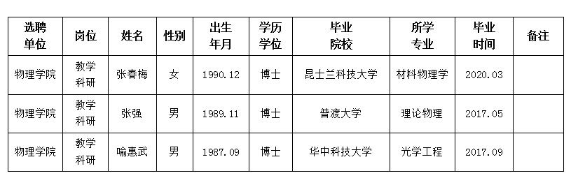 经用人单位推荐,人力资源部审查,学校教学督导及院系相关专家考核,乐鱼网页版页面登录拟确定下列人员来校工作。本着公平、公正、公开的原则,现将本次拟选聘人员基本情况公示如下:
