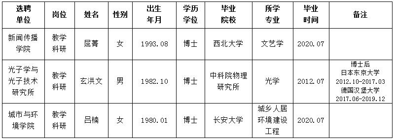 经用人单位推荐,人力资源部审查,学校教学督导及院系相关专家考核,乐鱼网页版页面登录拟确定下列人员来校工作。本着公平、公正、公开的原则,现将本次拟选聘人员基本情况公示如下: