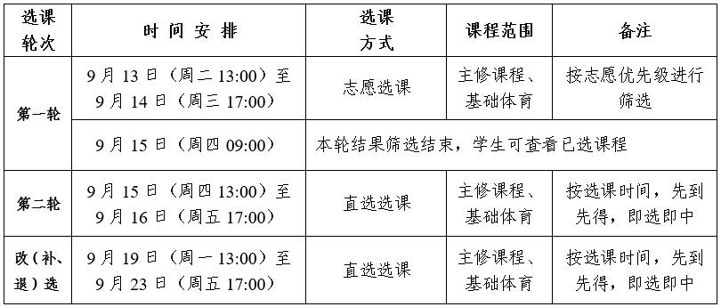1.选课分三轮进行,具体时间如下: