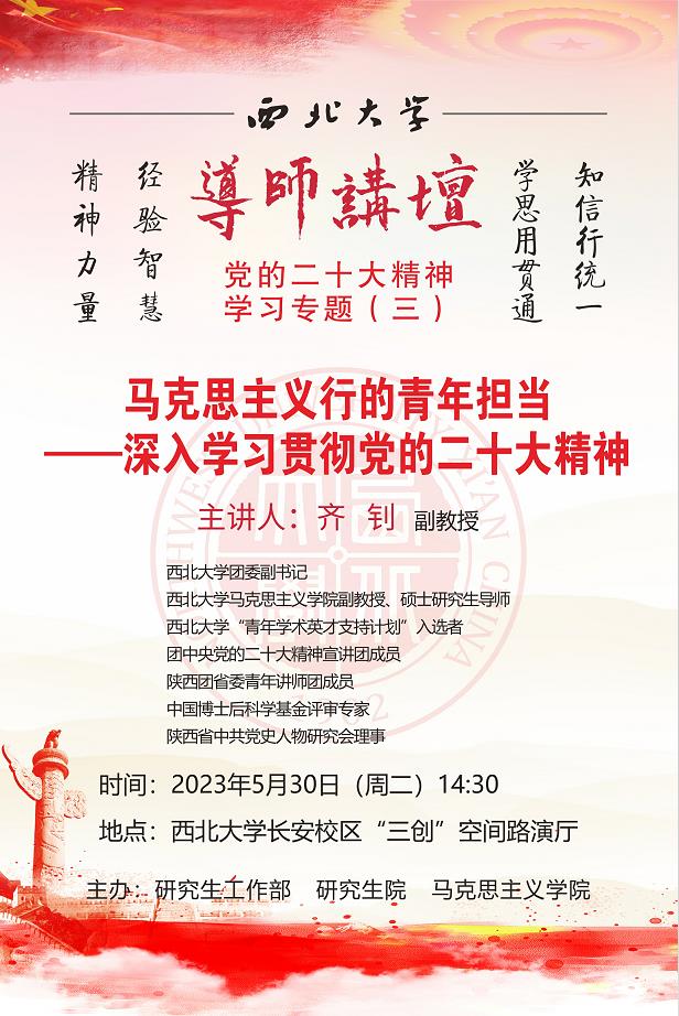 导师讲坛“党的二十大精神”学习专题(三):马克思主义行的青年担当——深入学习贯彻党的二十大精神
