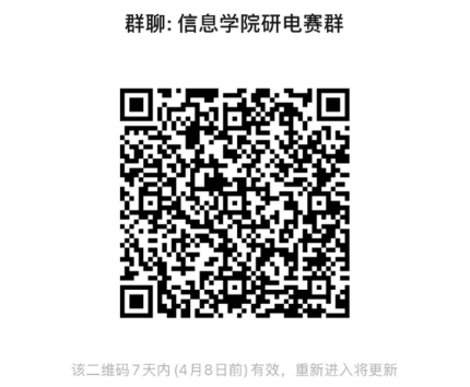 附:请参赛同学扫描以下二维码加入乐鱼网页版页面登录研究生电子设计竞赛群(信息学院研电赛群)。