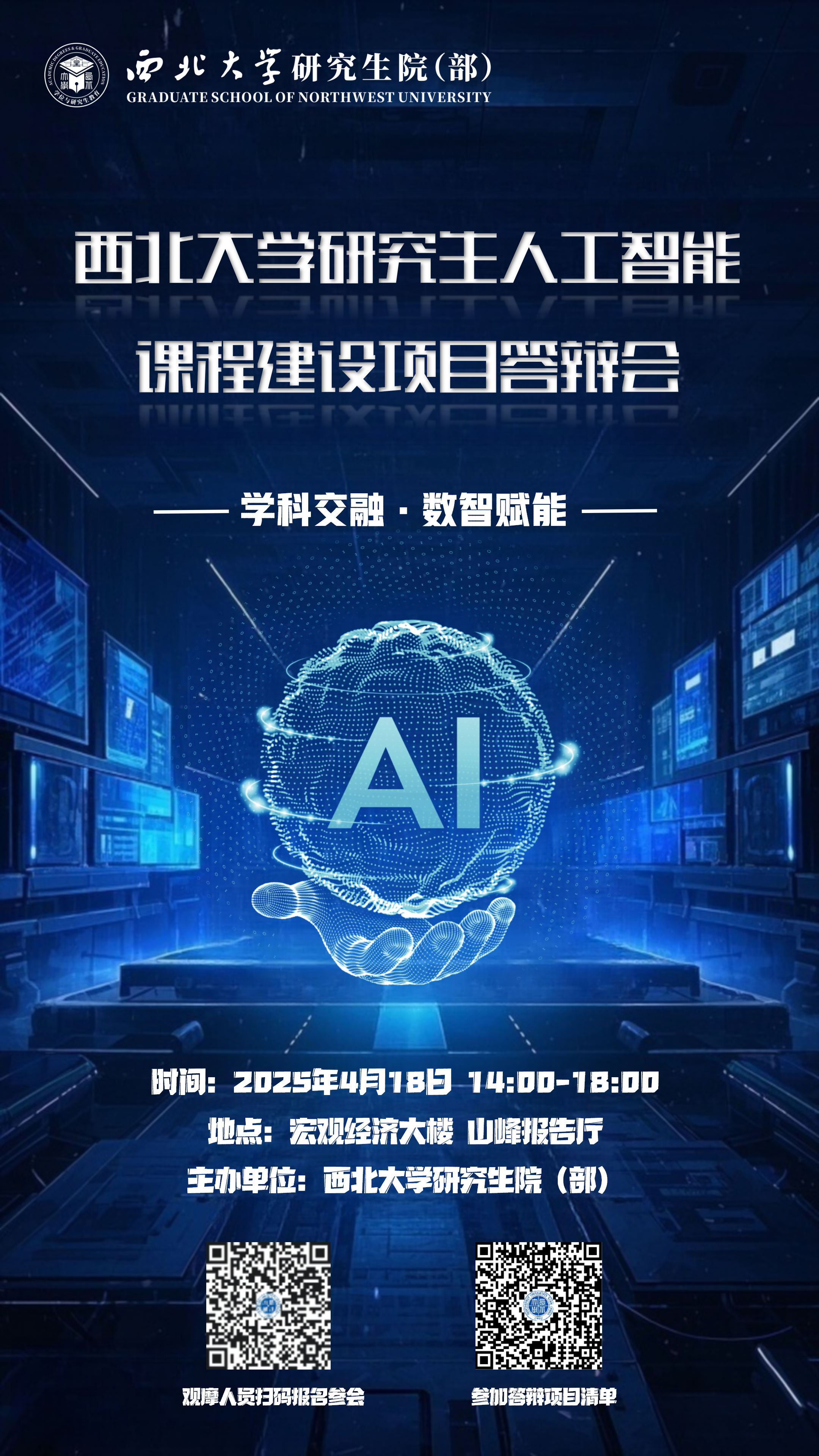 2.材料提交:请各项目团队于2025年4月15日17:00前,将汇报PPT初稿以“项目名称+负责人姓名”命名,发送至研究生院教学办公室邮箱(yjsjxk@nwu.edu.cn)。