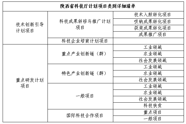 此次主要验收项目类别为已到期的各类陕西省科技计划项目(除自然科学基础研究计划项目),其详细计划类别如下: