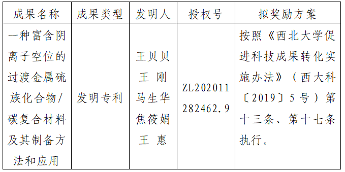 附件:拟转让成果信息及奖励方案