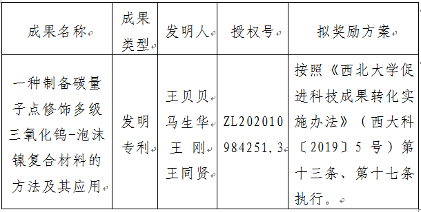 按照《乐鱼网页版页面登录促进科技成果转化实施办法》(西大科〔2019〕5号)相关规定,拟对乐鱼网页版页面登录光子所王贝贝老师作为成果负责人的1项发明专利权实施转化,现将相关信息公示如下: