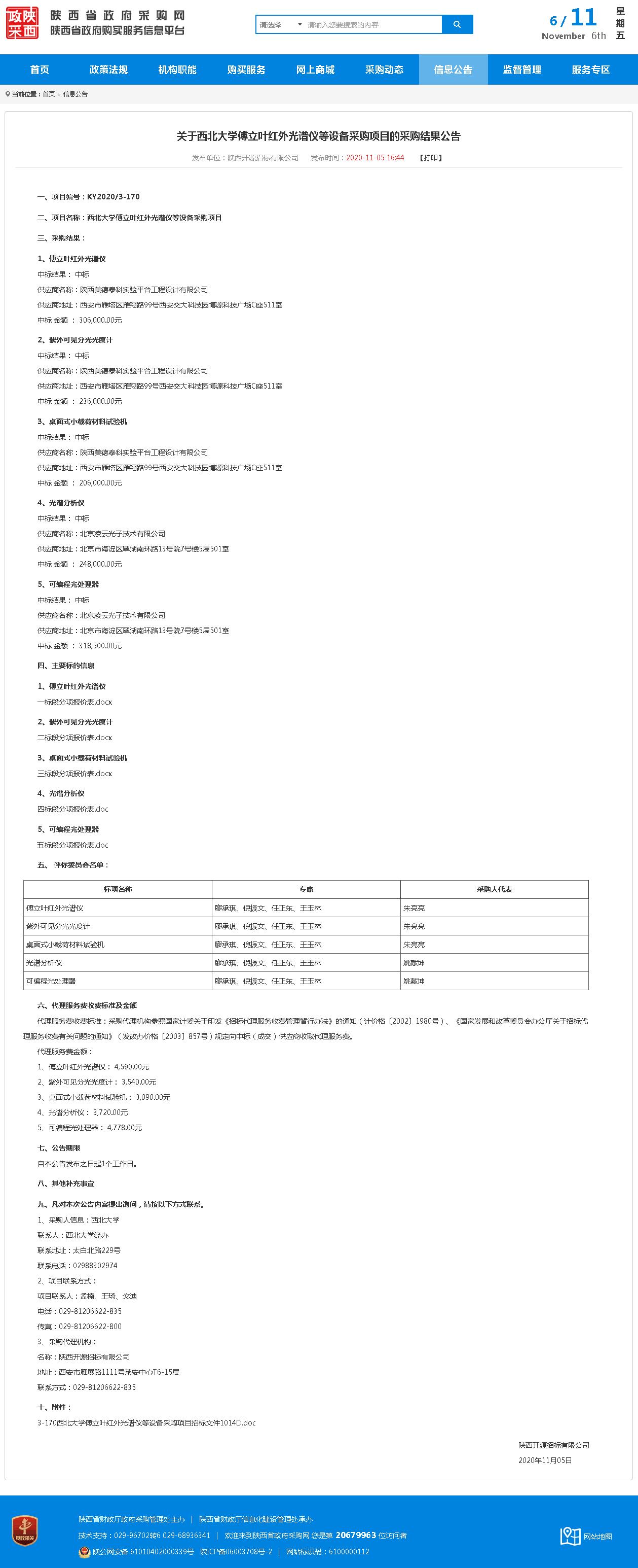 关于乐鱼网页版页面登录傅立叶红外光谱仪等设备采购项目的采购结果公告