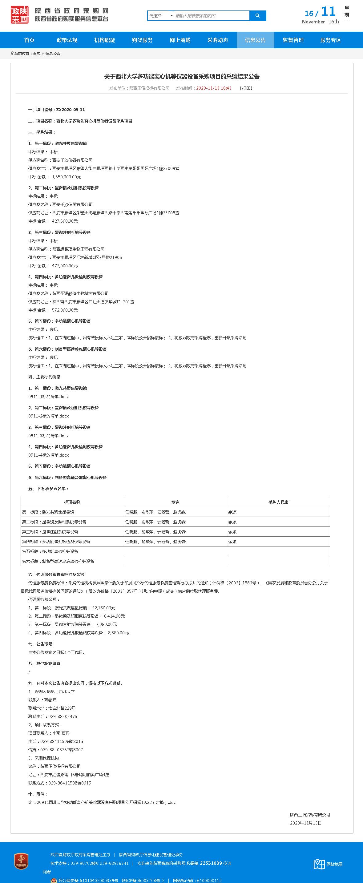 关于乐鱼网页版页面登录多功能离心机等仪器设备采购项目的采购结果公告