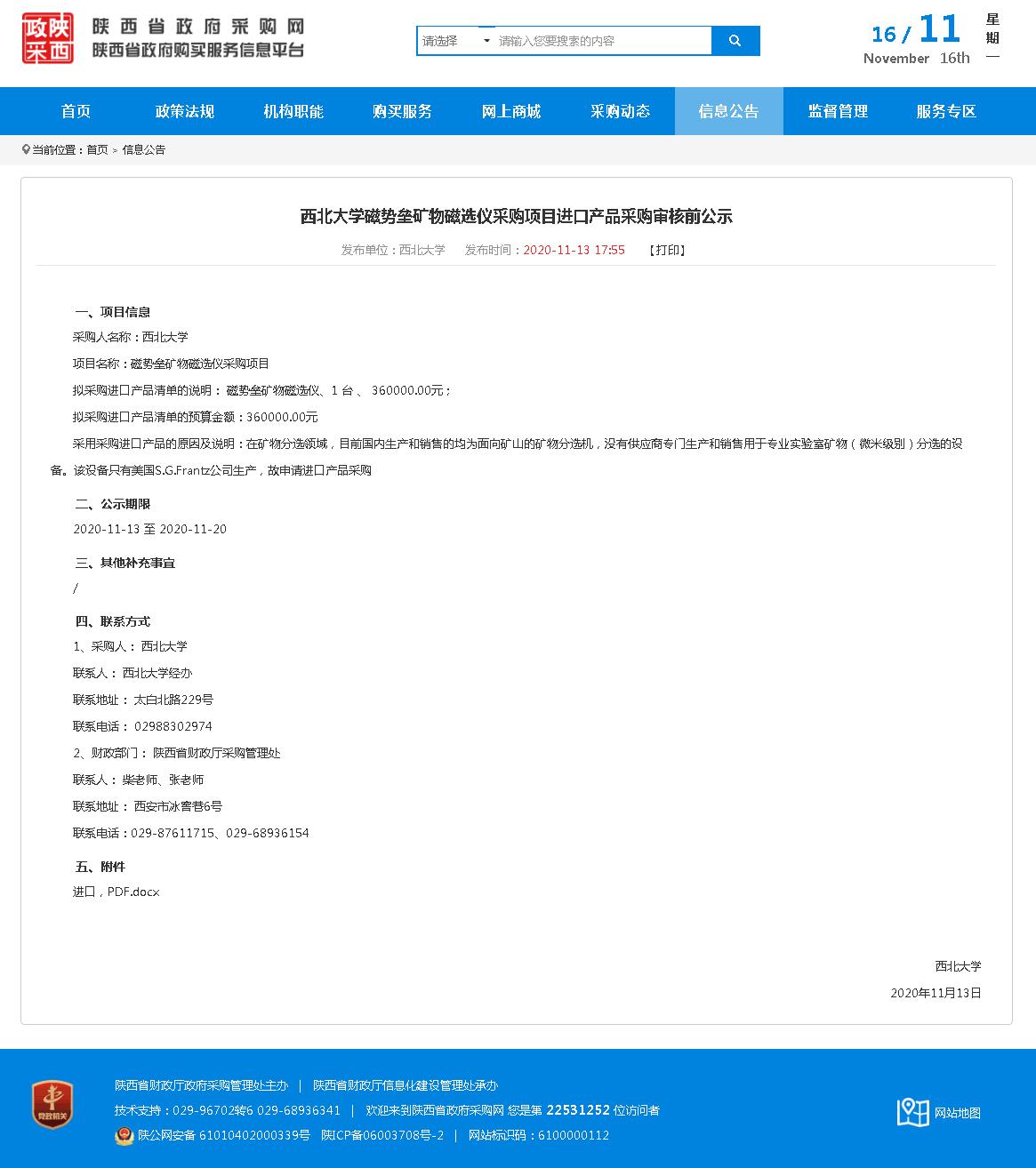 乐鱼网页版页面登录磁势垒矿物磁选仪采购项目进口产品采购审核前公示