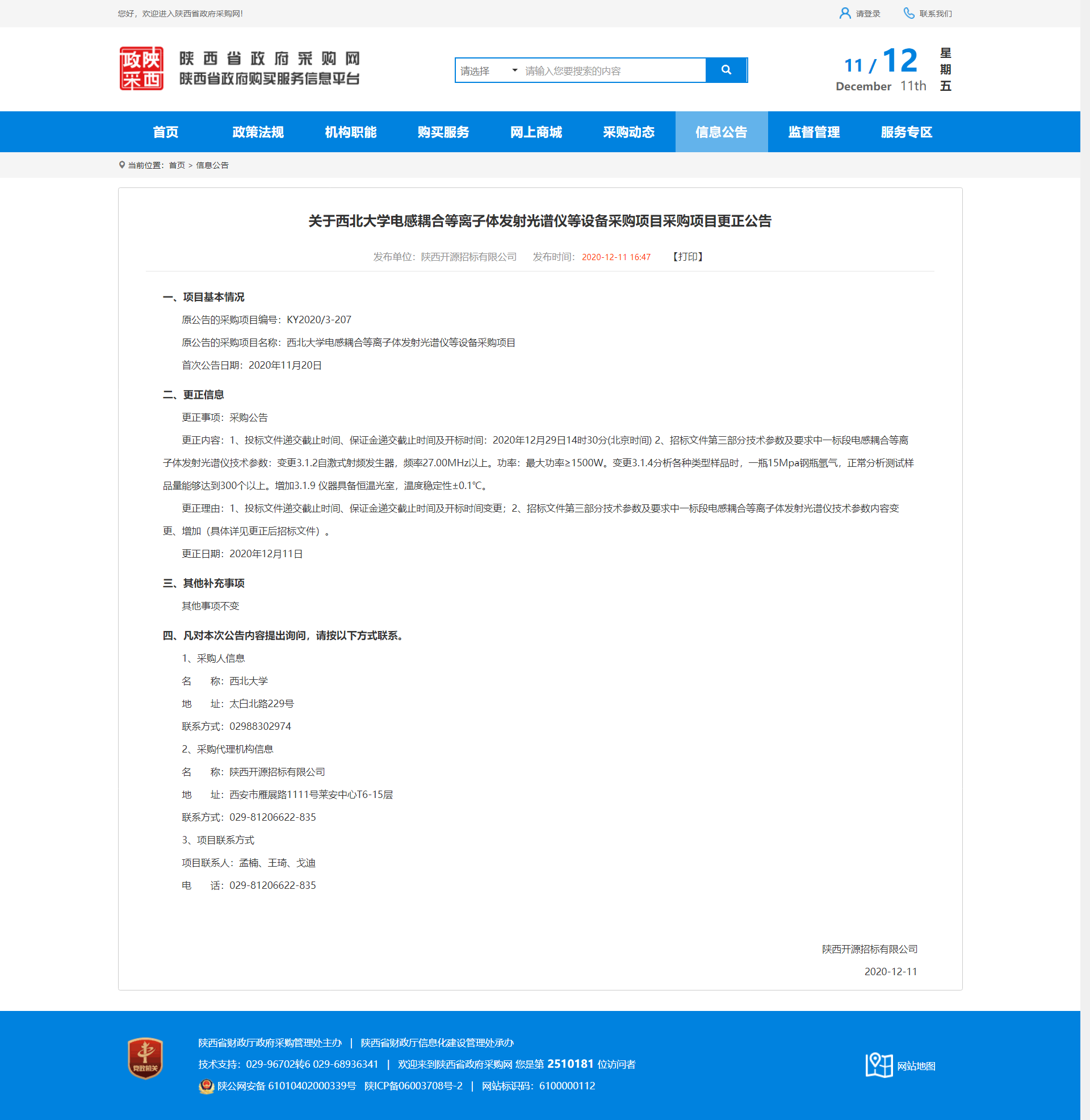 关于乐鱼网页版页面登录电感耦合等离子体发射光谱仪等设备采购项目采购项目更正公告 作者: 编辑:薛利娟 时间:2020-12-11 原公告地址:http://www.ccgp-shaanxi.gov.cn/notice/noticeDetail.do?noticeguid=8a85be3375d5d589017650e8e44672f0