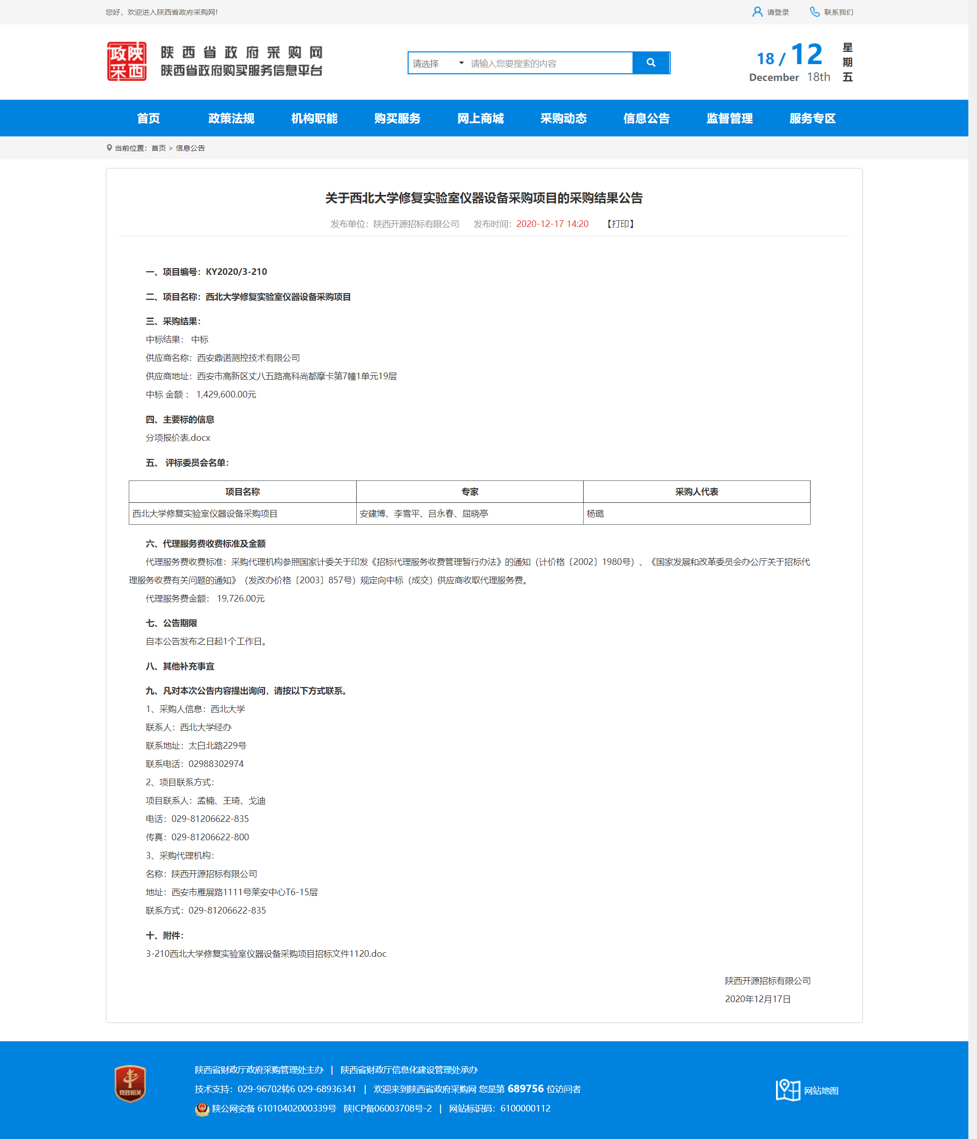 关于乐鱼网页版页面登录修复实验室仪器设备采购项目的采购结果公告 作者: 编辑:薛利娟 时间:2020-12-18 原公告地址:http://www.ccgp-shaanxi.gov.cn/notice/noticeDetail.do?noticeguid=8a85be34765f9eac01766f3cbcd749f6