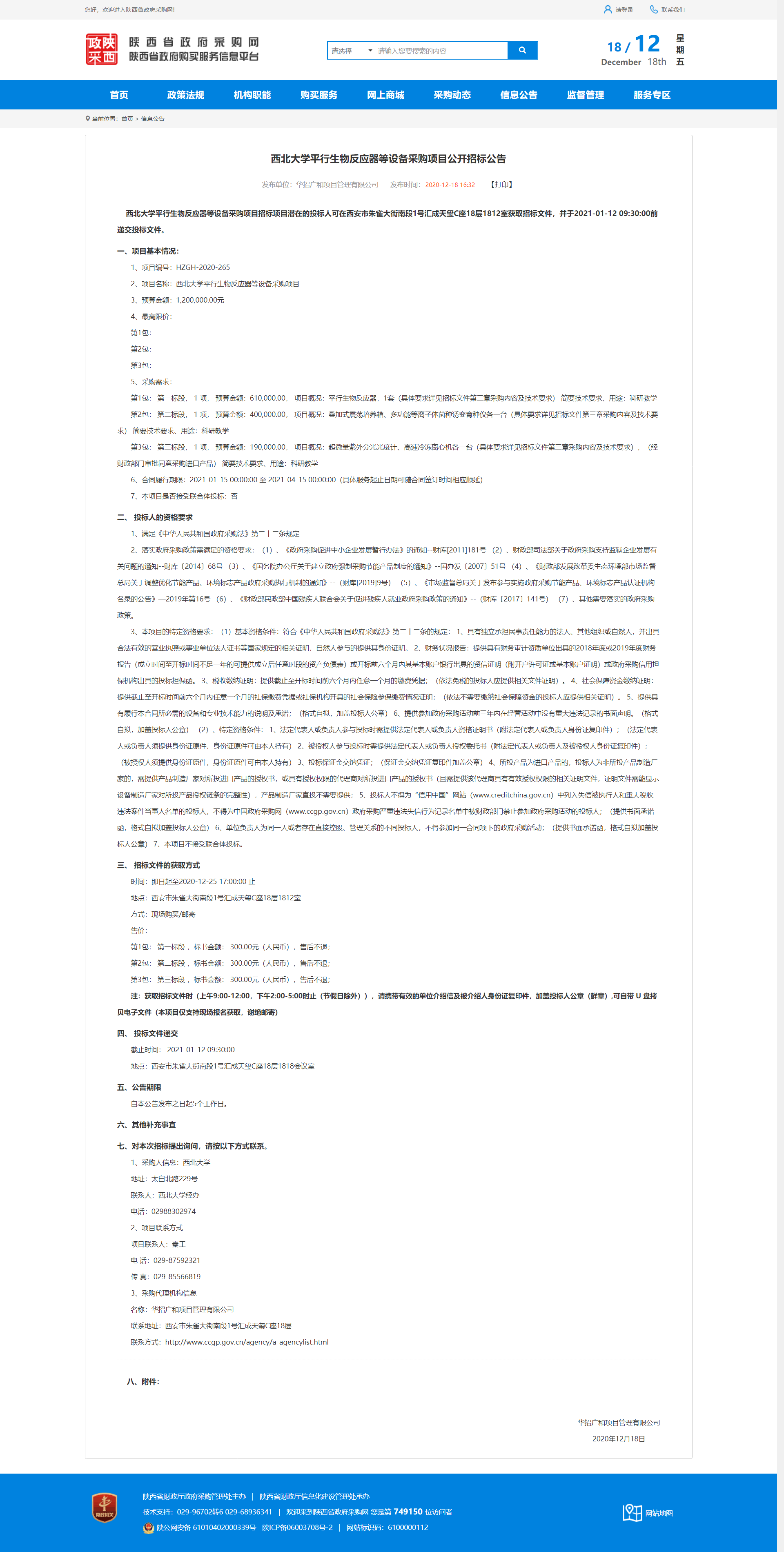 乐鱼网页版页面登录平行生物反应器等设备采购项目公开招标公告 作者: 编辑:薛利娟 时间:2020-12-18 原公告地址:http://www.ccgp-shaanxi.gov.cn/notice/noticeDetail.do?noticeguid=8a85be32765f9c9b017674d0094477c2