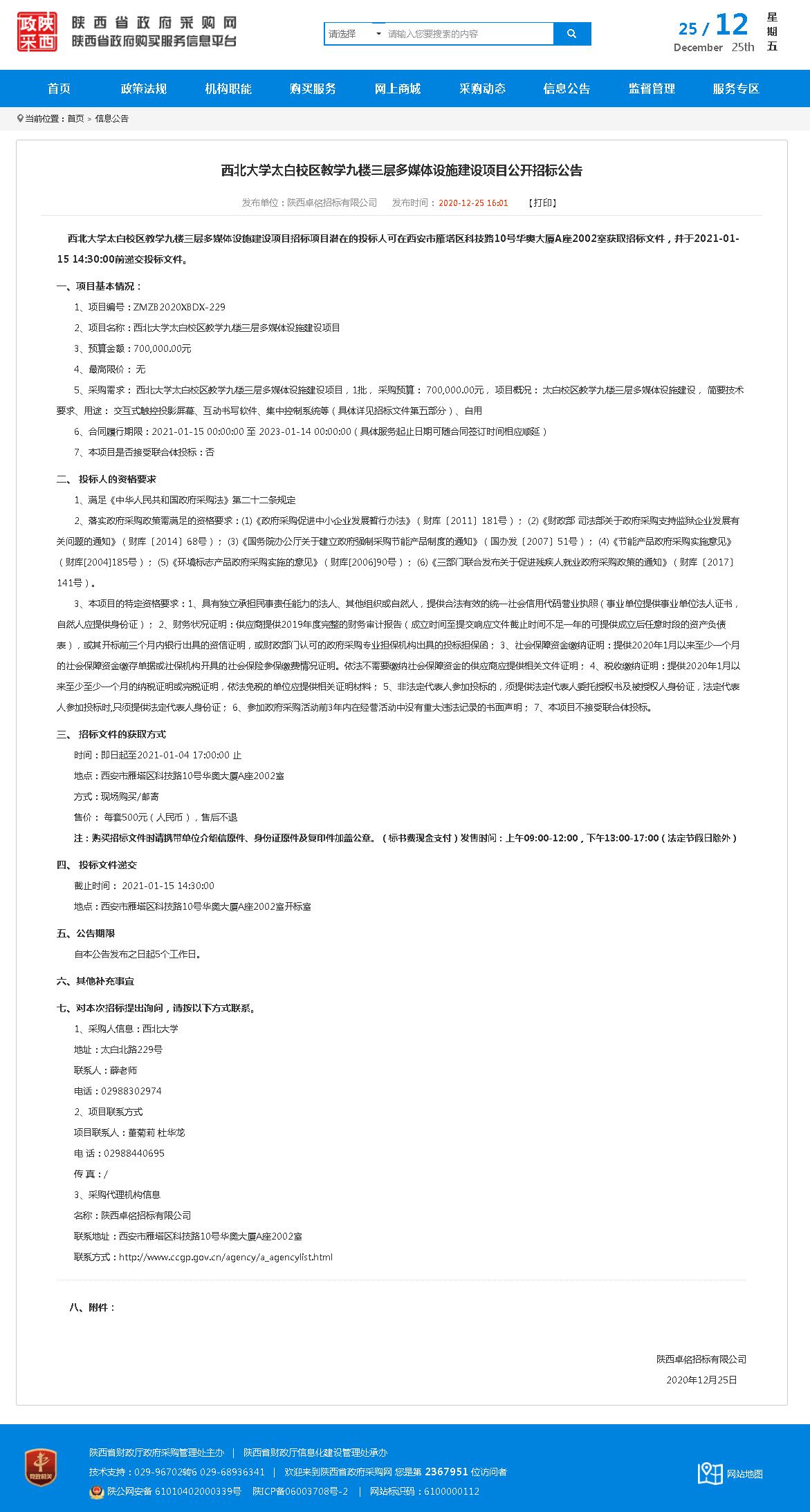 乐鱼网页版页面登录太白校区教学九楼三层多媒体设施建设项目公开招标公告