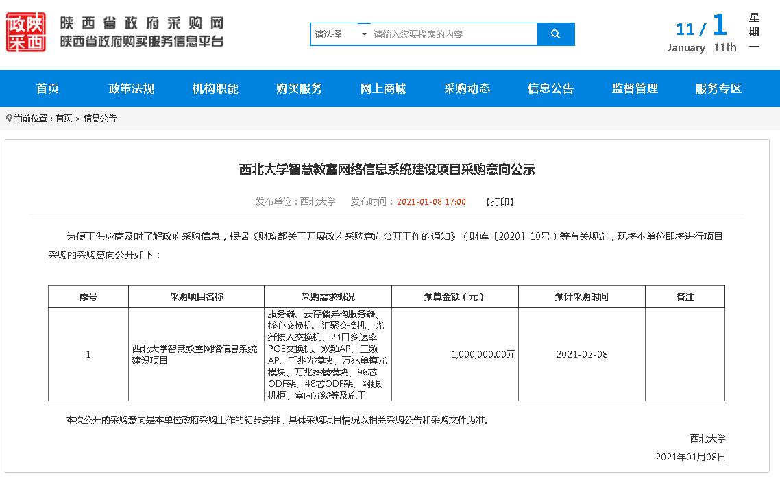 乐鱼网页版页面登录智慧教室网络信息系统建设项目采购意向公示