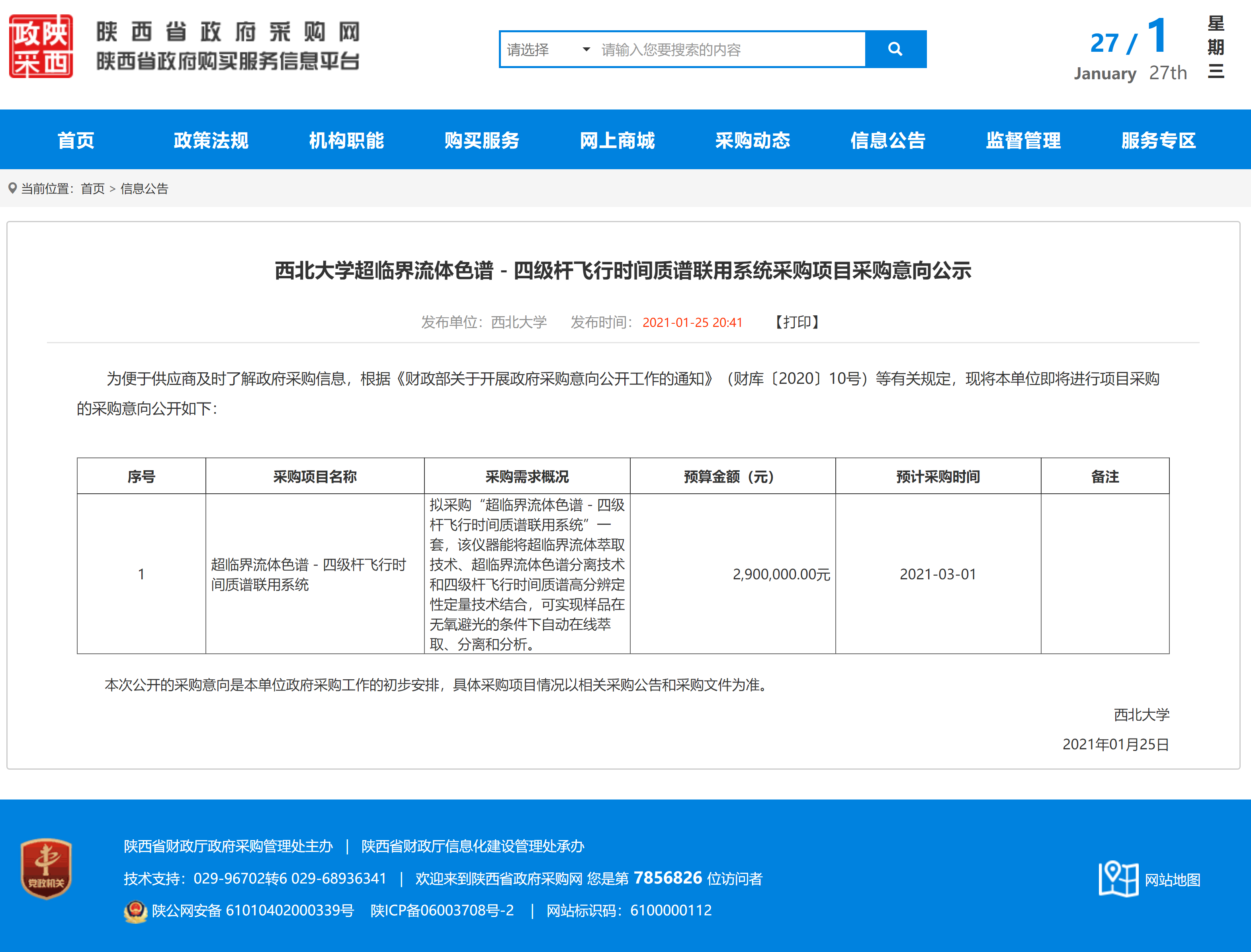 乐鱼网页版页面登录超临界流体色谱-四级杆飞行时间质谱联用系统采购项目采购意向公示