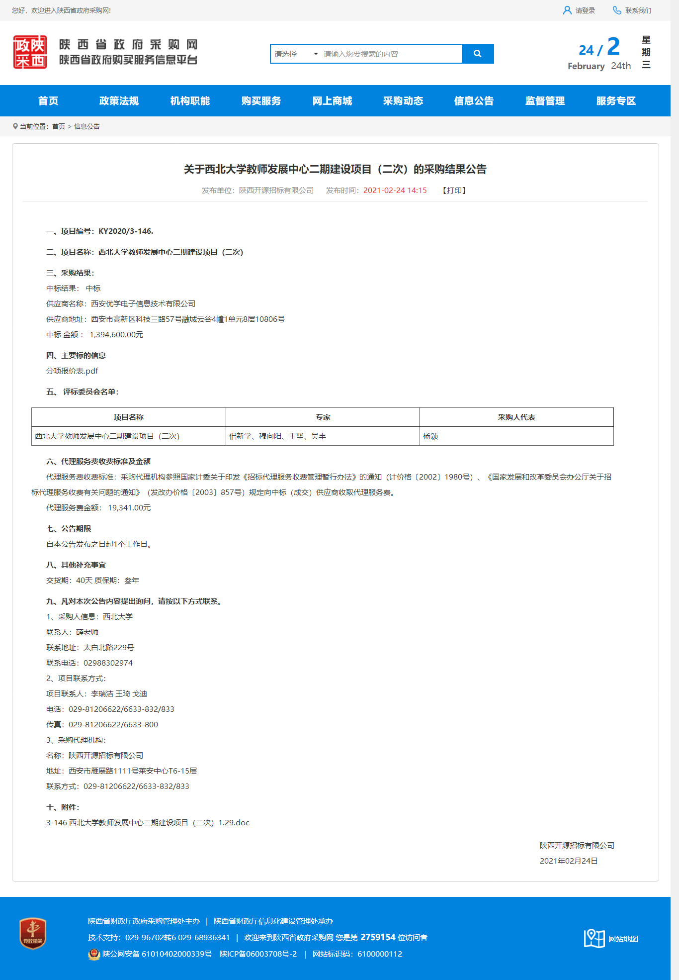 乐鱼网页版页面登录教师发展中心二期建设项目(二次)的采购结果公告 作者: 编辑:薛利娟 时间:2021-02-24 原公告地址:http://www.ccgp-shaanxi.gov.cn/notice/noticeDetail.do?noticeguid=8a85be3477b2ecb70177d2a0f8a67706