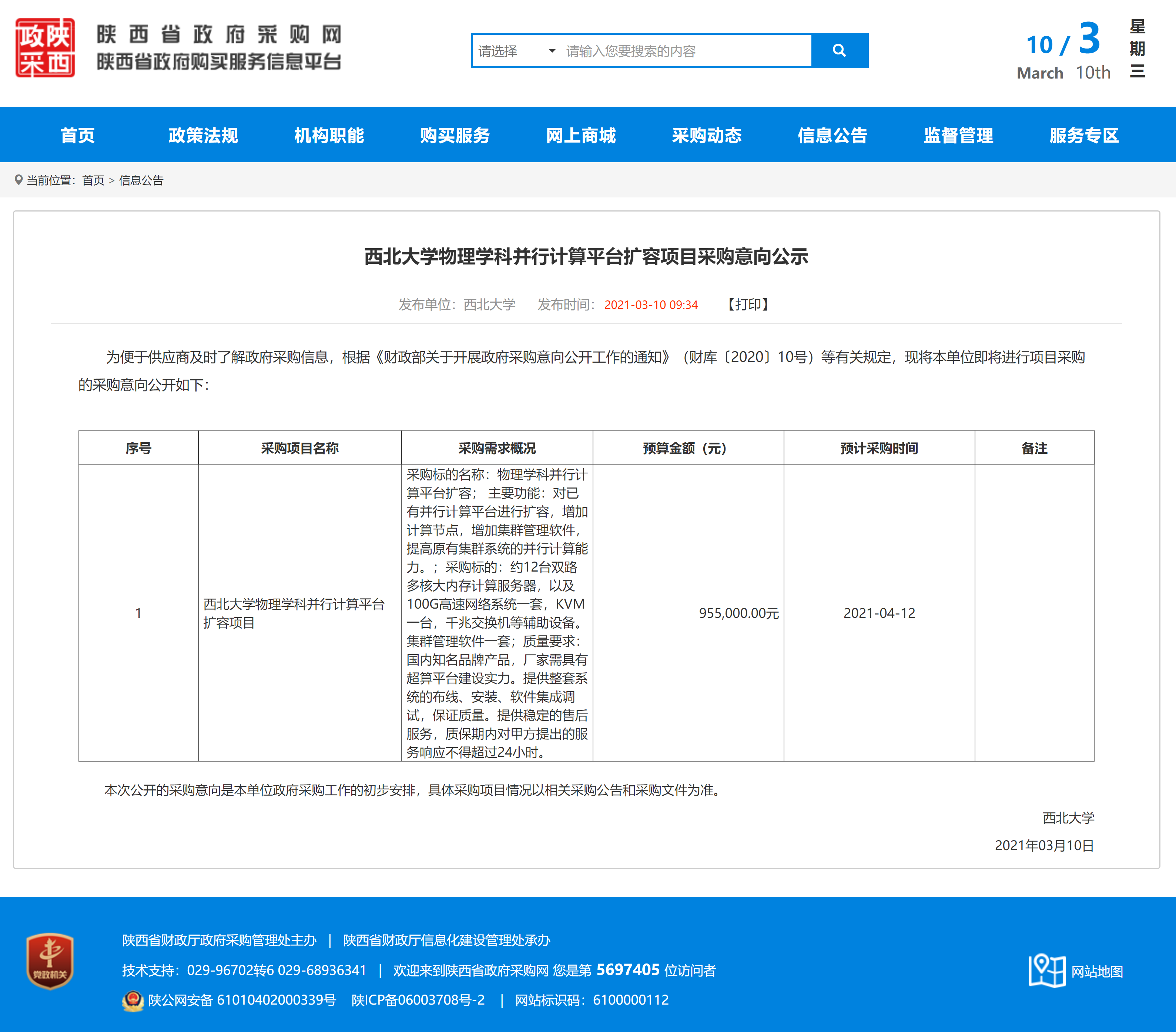 乐鱼网页版页面登录物理学科并行计算平台扩容项目采购意向公示