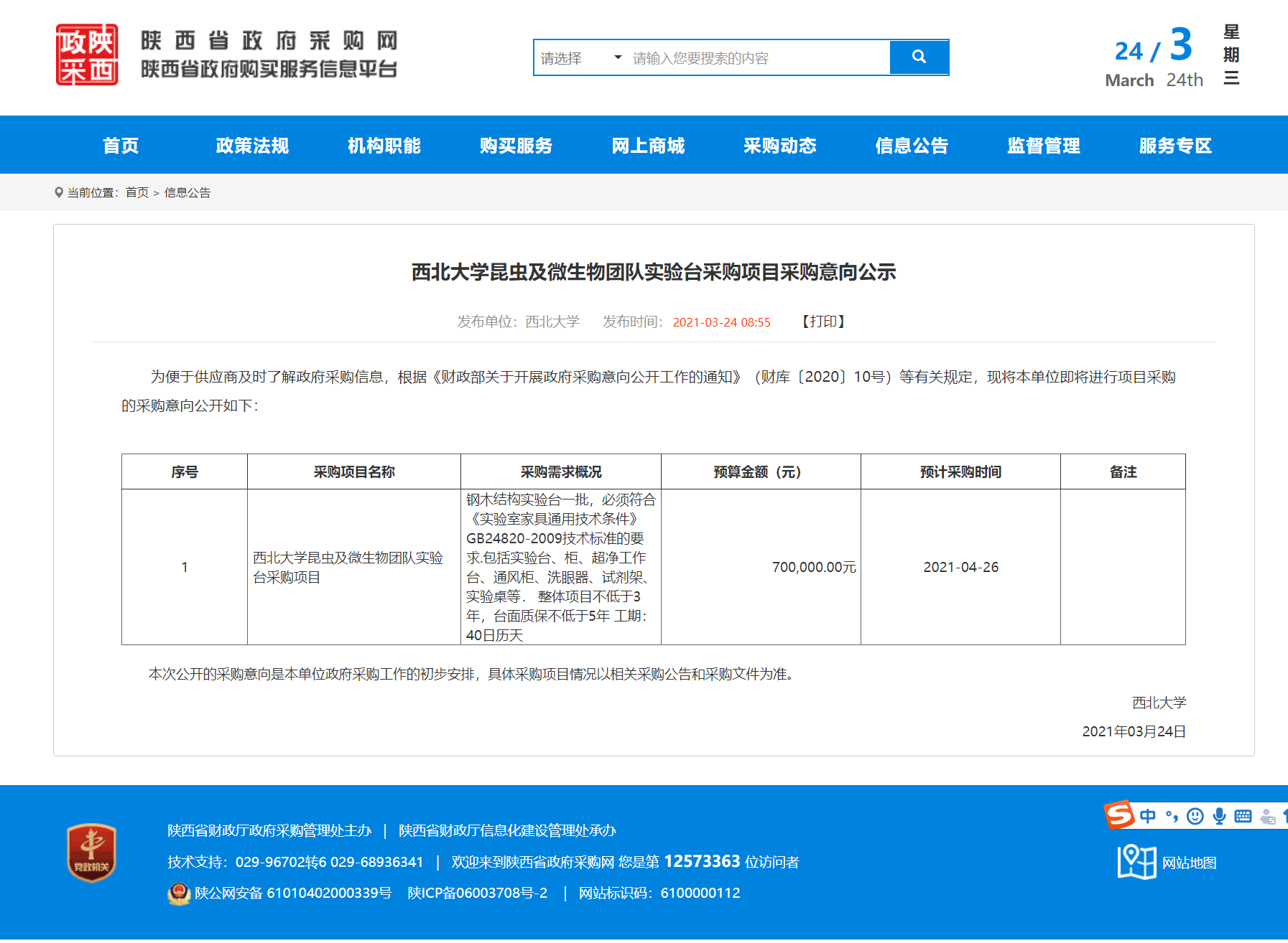 乐鱼网页版页面登录昆虫及微生物团队实验台采购项目采购意向公示