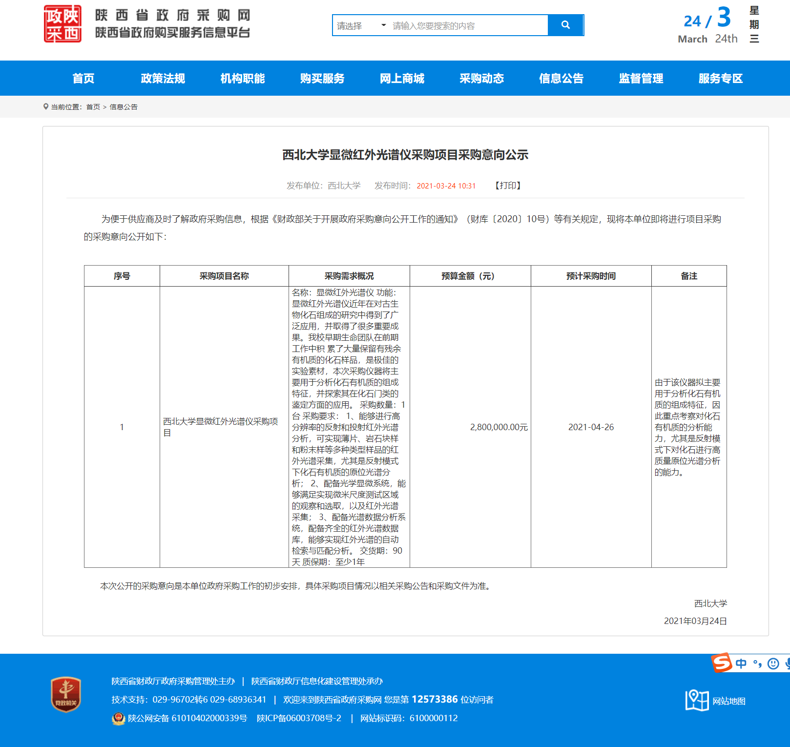 乐鱼网页版页面登录显微红外光谱仪采购项目采购意向公示