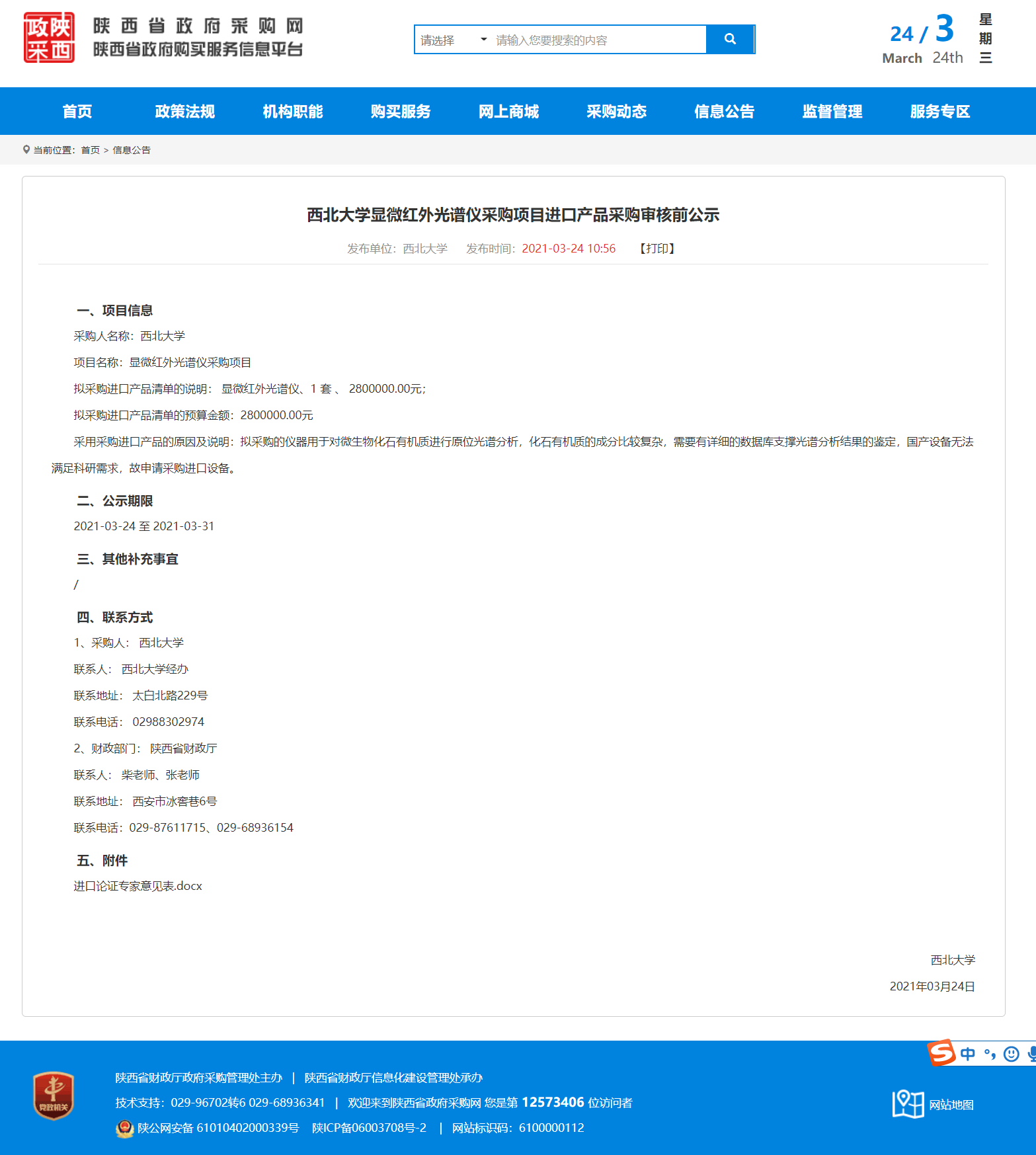 乐鱼网页版页面登录显微红外光谱仪采购项目进口产品采购审核前公示