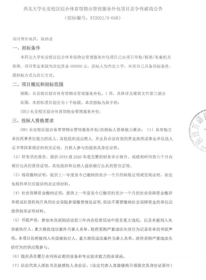 乐鱼网页版页面登录长安校区综合体育馆物业管理服务外包项目竞争性磋商公告