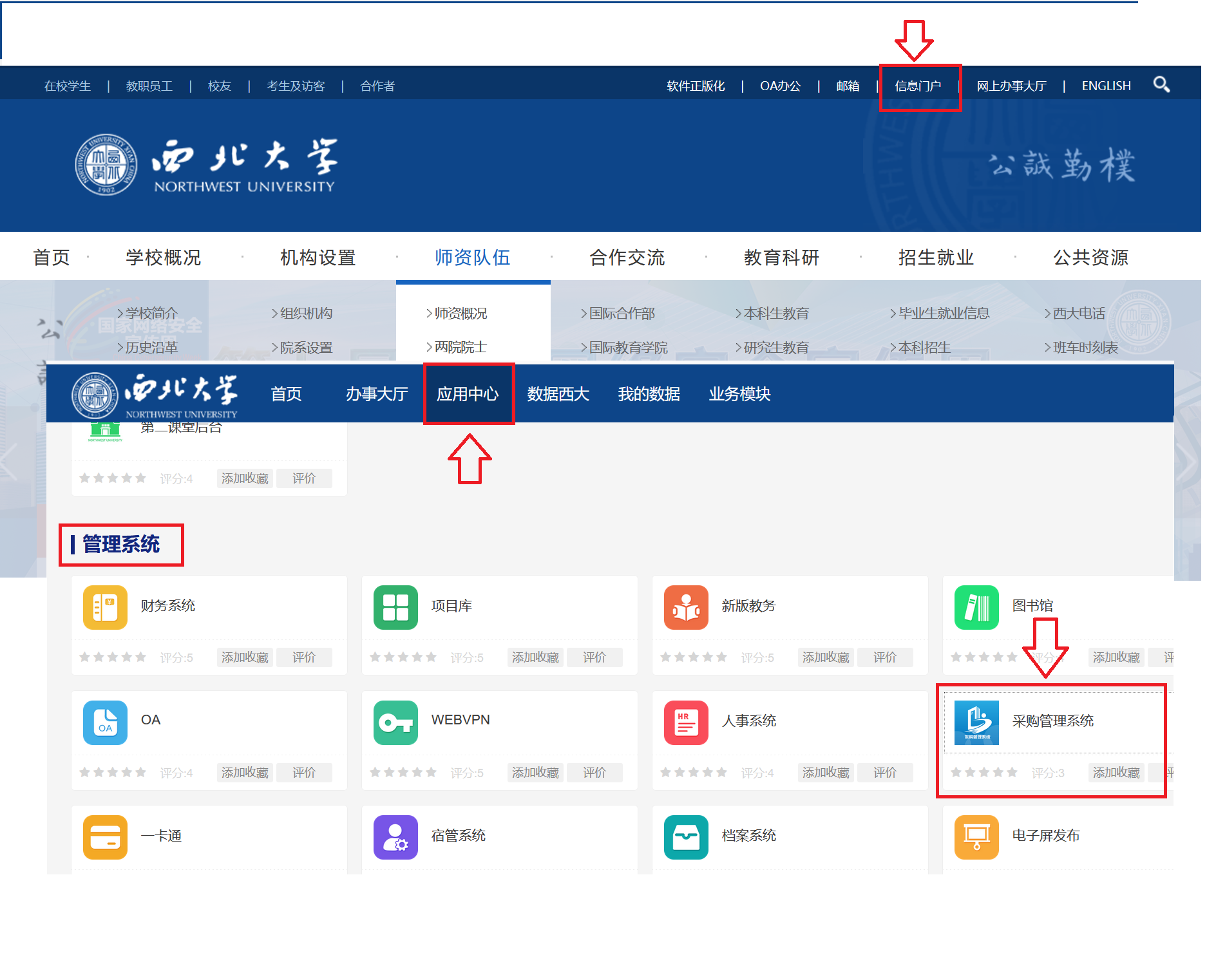校内各单位可通过校园网乐鱼(中国)右上角信息门户登陆后,选择应用中心-在管理系统栏目选择登录采购管理系统。或者通过乐鱼网页版页面登录采购与招标办公室网站乐鱼(中国)“采购管理”登录,请使用谷歌、火狐或者微软浏览器登陆。