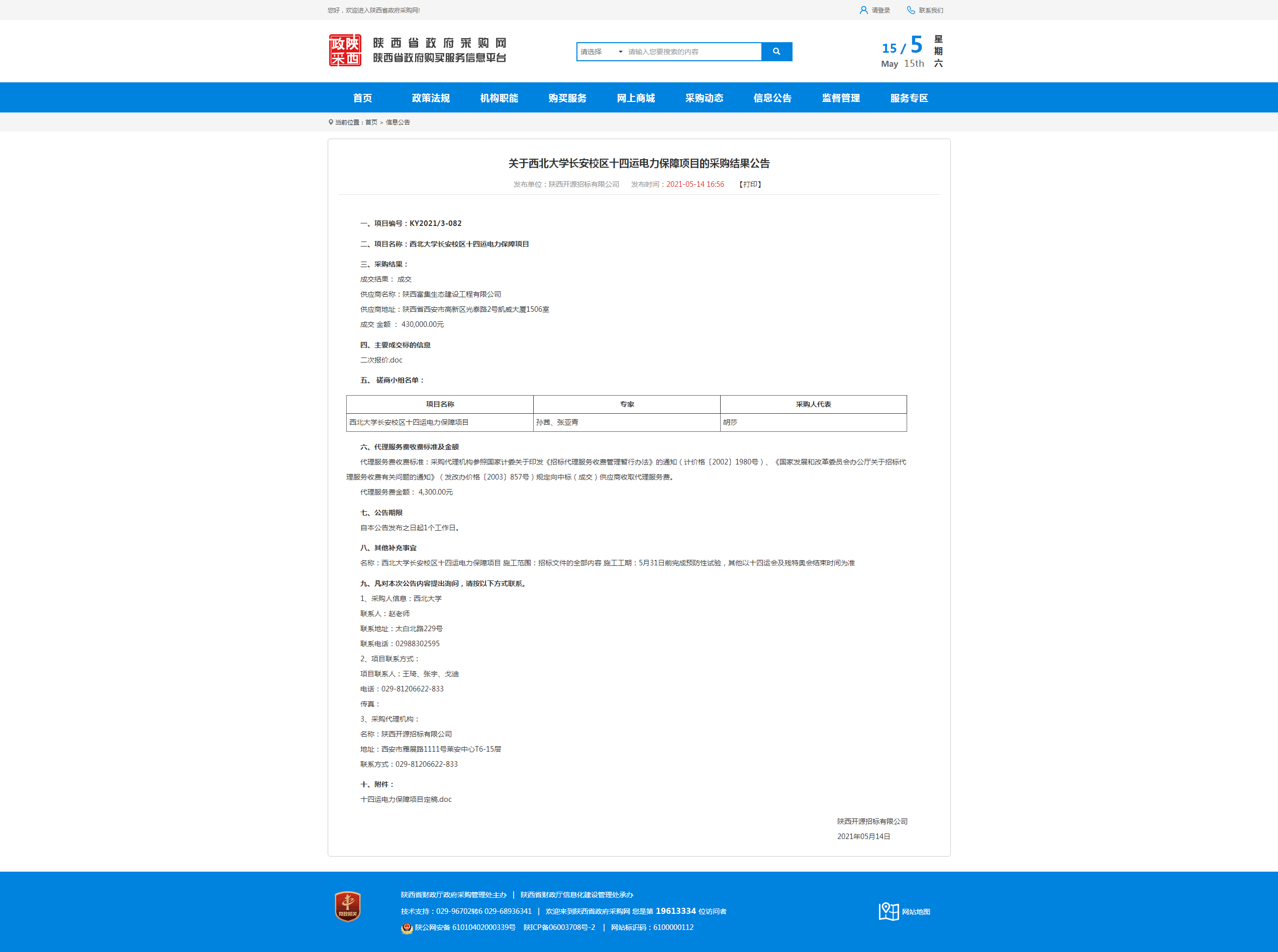 关于乐鱼网页版页面登录长安校区十四运电力保障项目的采购结果公告
