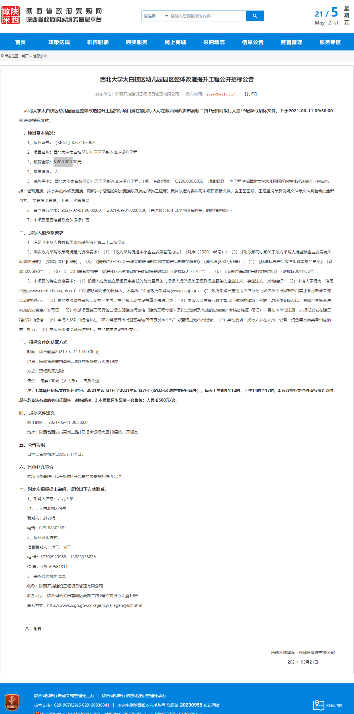 乐鱼网页版页面登录太白校区幼儿园园区整体改造提升工程公开招标公告