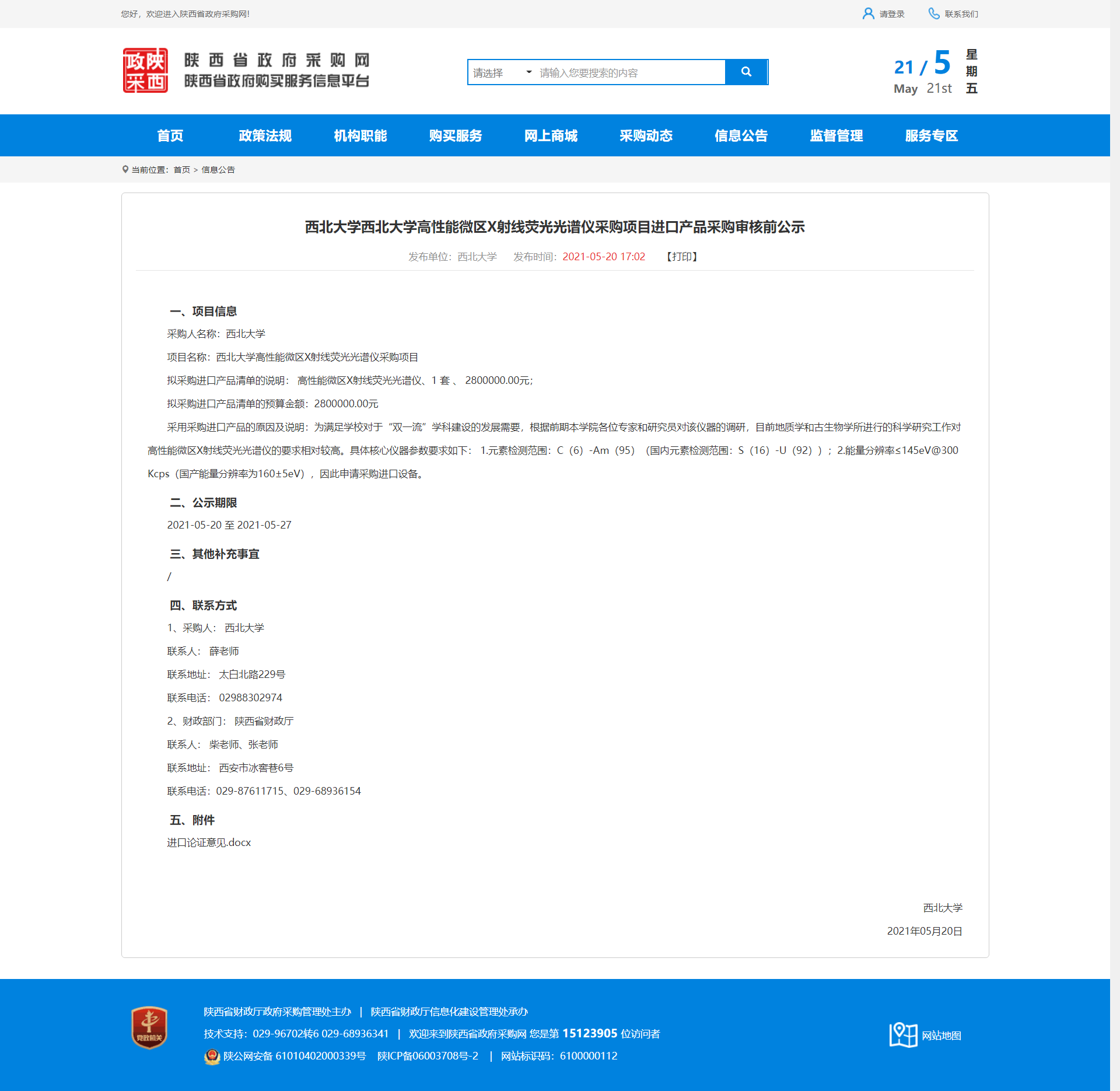 乐鱼网页版页面登录高性能微区X射线荧光光谱仪采购项目进口产品采购审核前公示 作者: 编辑:薛利娟 时间:2021-05-21 原公告地址:http://www.ccgp-shaanxi.gov.cn/notice/noticeDetail.do?noticeguid=8a85be33791baa0f017988f95b141335