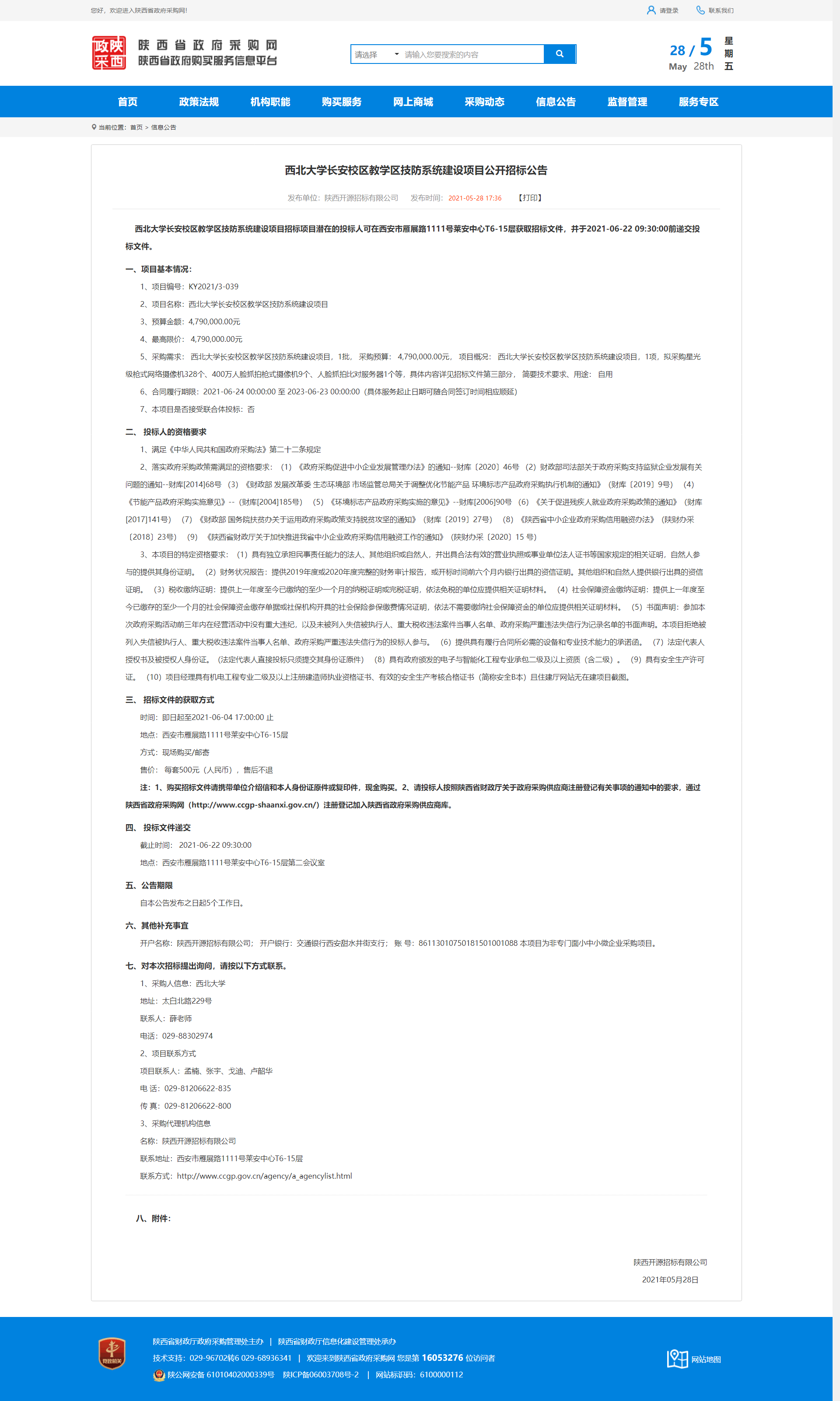 乐鱼网页版页面登录长安校区教学区技防系统建设项目公开招标公告 作者: 编辑:薛利娟 时间:2021-05-28 原公告地址:http://www.ccgp-shaanxi.gov.cn/notice/noticeDetail.do?noticeguid=8a85be3478a597990179b2102a6f761a