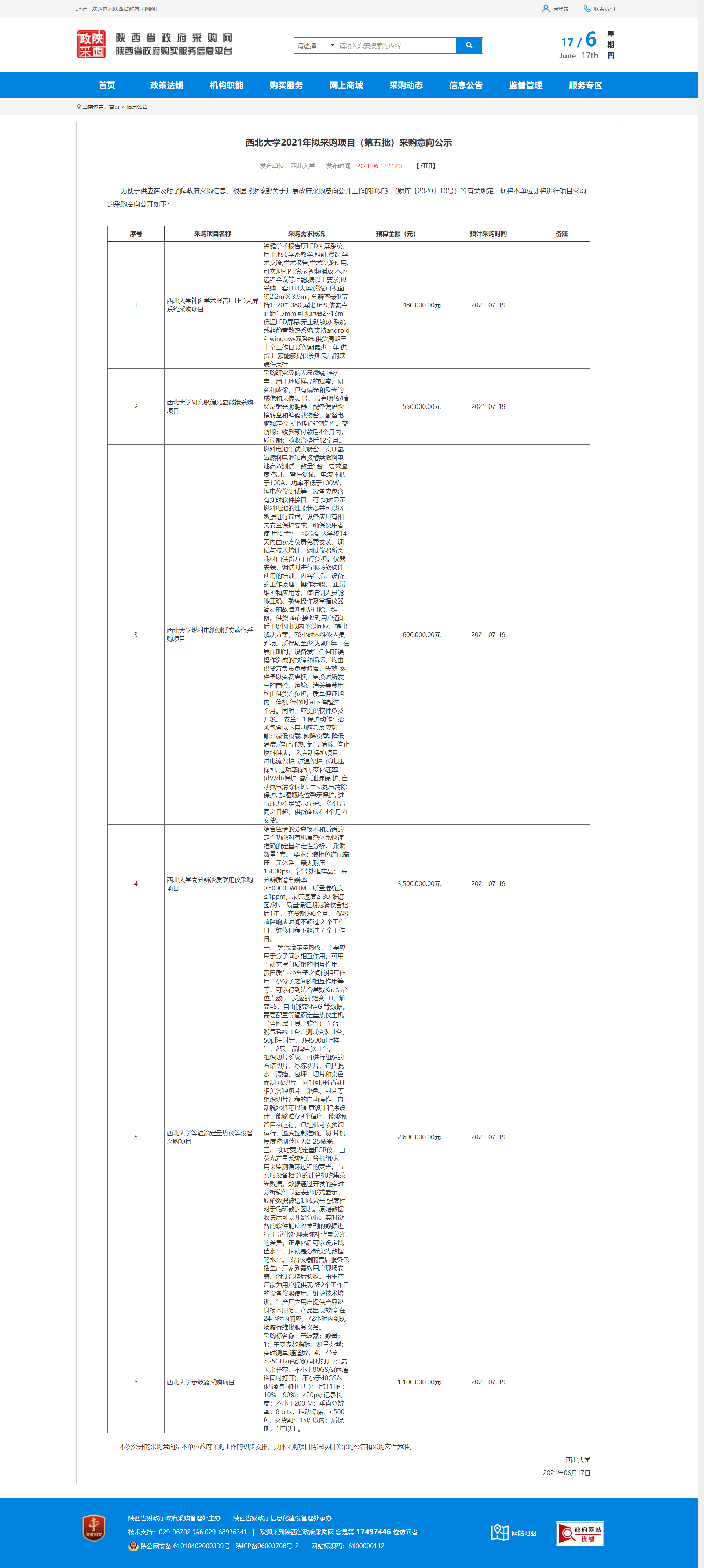 乐鱼网页版页面登录2021年拟采购项目(第五批)采购意向公示 作者:采购与招标办公室 编辑: 时间:2021-06-17 原公告地址:http://www.ccgp-shaanxi.gov.cn/notice/noticeDetail.do?noticeguid=8a85be33791baa0f017a17ba426d2bfb