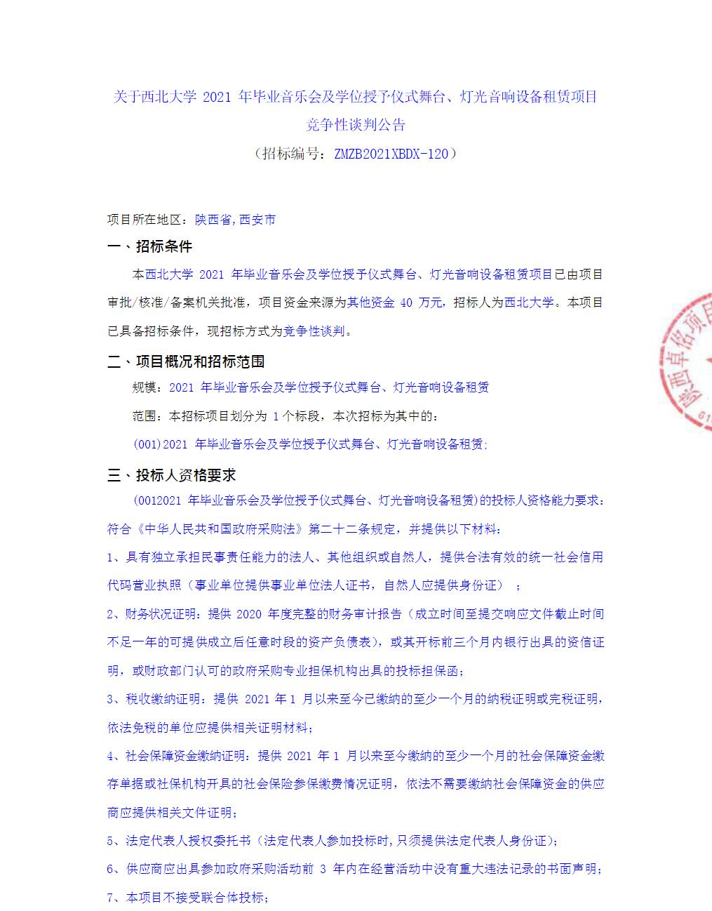 乐鱼网页版页面登录2021年毕业音乐会及学位授予仪式舞台、灯光音响设备租赁项目竞争性谈判公告