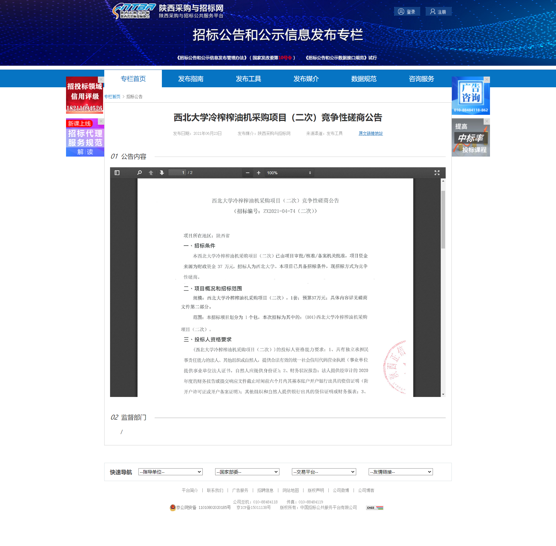 乐鱼网页版页面登录冷榨榨油机采购项目(二次)竞争性磋商公告 作者: 编辑:采购与招标办公室 时间:2021-06-24 原公告地址:http://bulletin.sntba.com/biddingBulletin/2021-06-23/311036.html