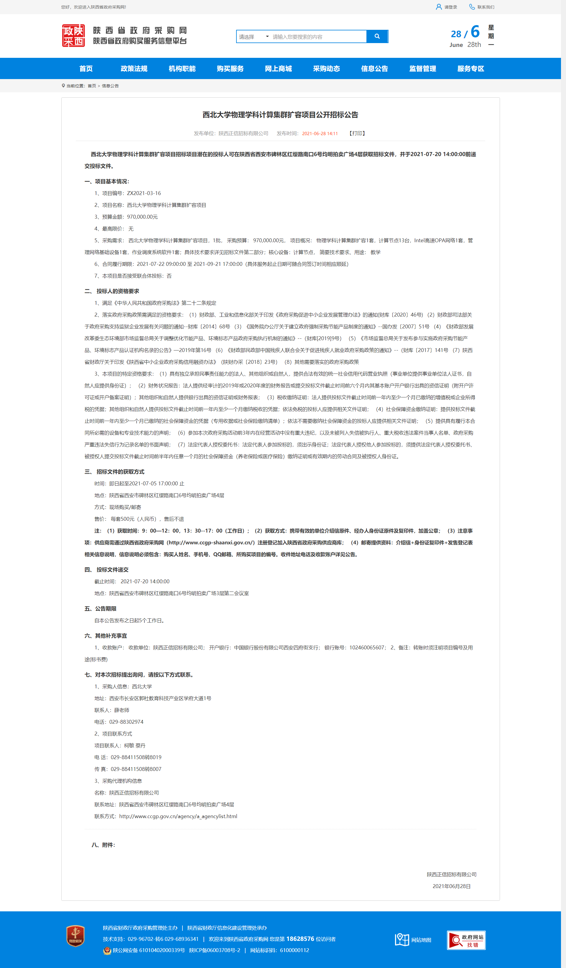 乐鱼网页版页面登录物理学科计算集群扩容项目公开招标公告 作者: 编辑:采购与招标办公室 时间:2021-06-28 原公告地址:http://www.ccgp-shaanxi.gov.cn/notice/noticeDetail.do?noticeguid=8a85be33791baa0f017a50f2f9203176