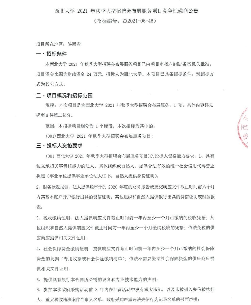 乐鱼网页版页面登录2021年秋季大型招聘会布展服务项目竞争性磋商公告