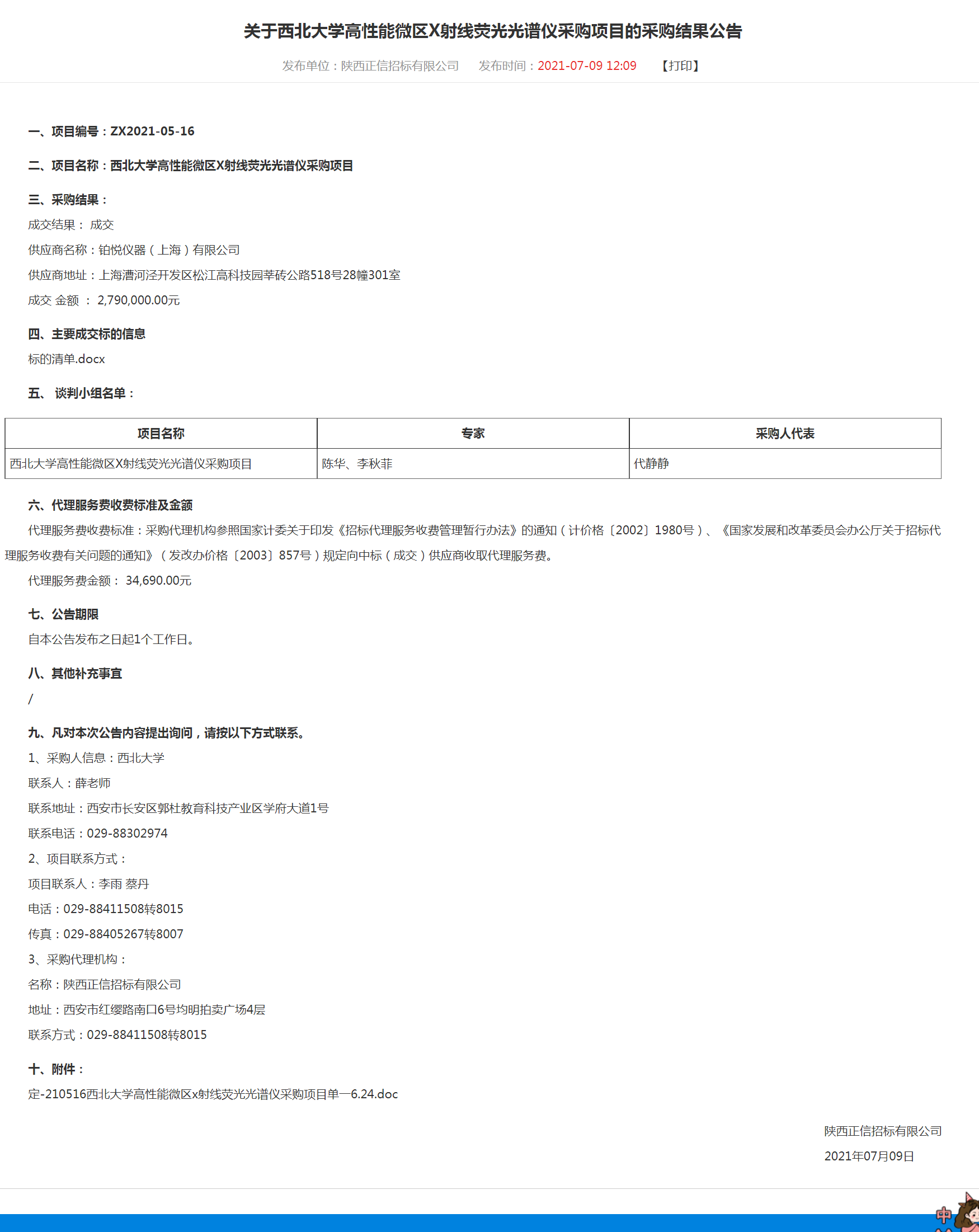 关于乐鱼网页版页面登录高性能微区X射线荧光光谱仪采购项目的采购结果公告