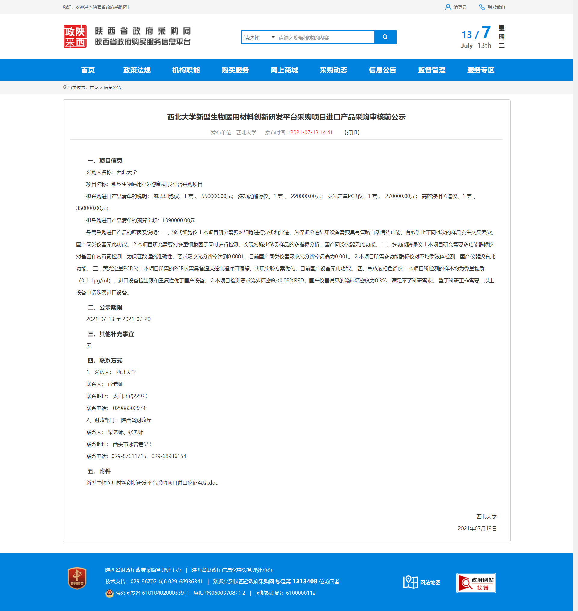 乐鱼网页版页面登录新型生物医用材料创新研发平台采购项目进口产品采购审核前公示 作者: 编辑:采购与招标办公室 时间:2021-07-13 原公示地址:http://www.ccgp-shaanxi.gov.cn/notice/noticeDetail.do?noticeguid=8a85be317a79693c017a9e7fb1b57286