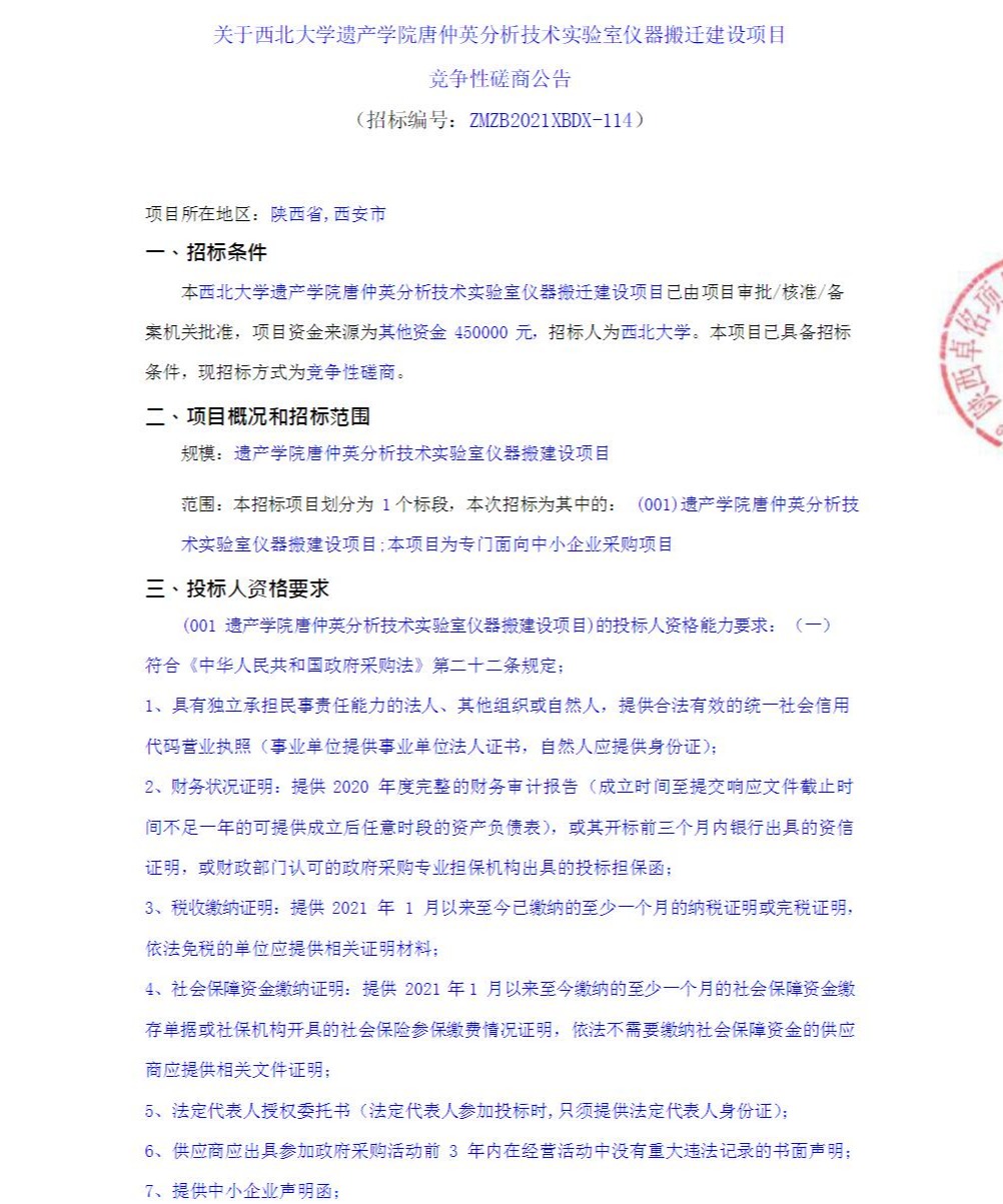 关于乐鱼网页版页面登录遗产学院唐仲英分析技术实验室仪器搬迁建设项目竞争性磋商公告